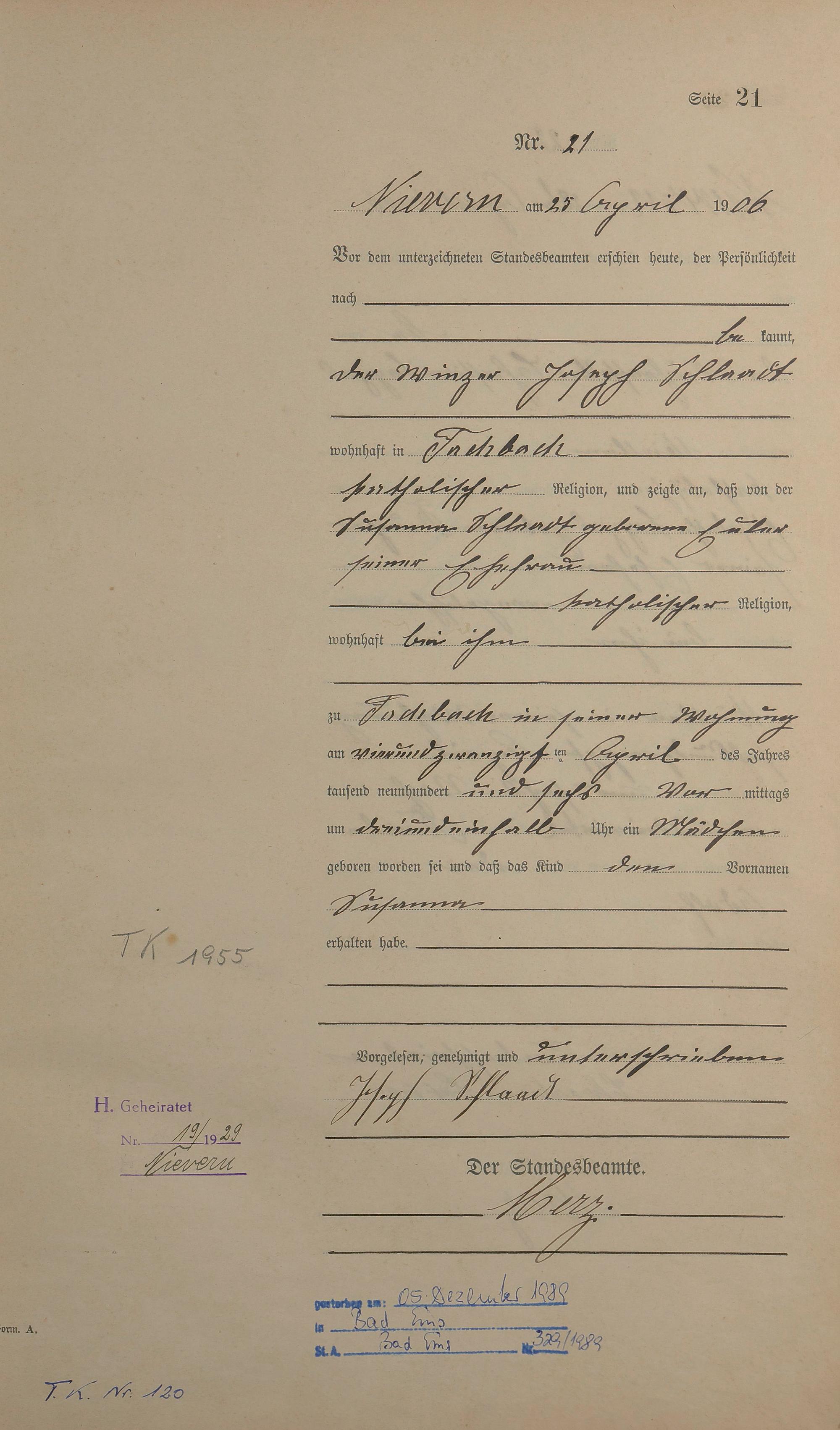 Geburtsregister 1906