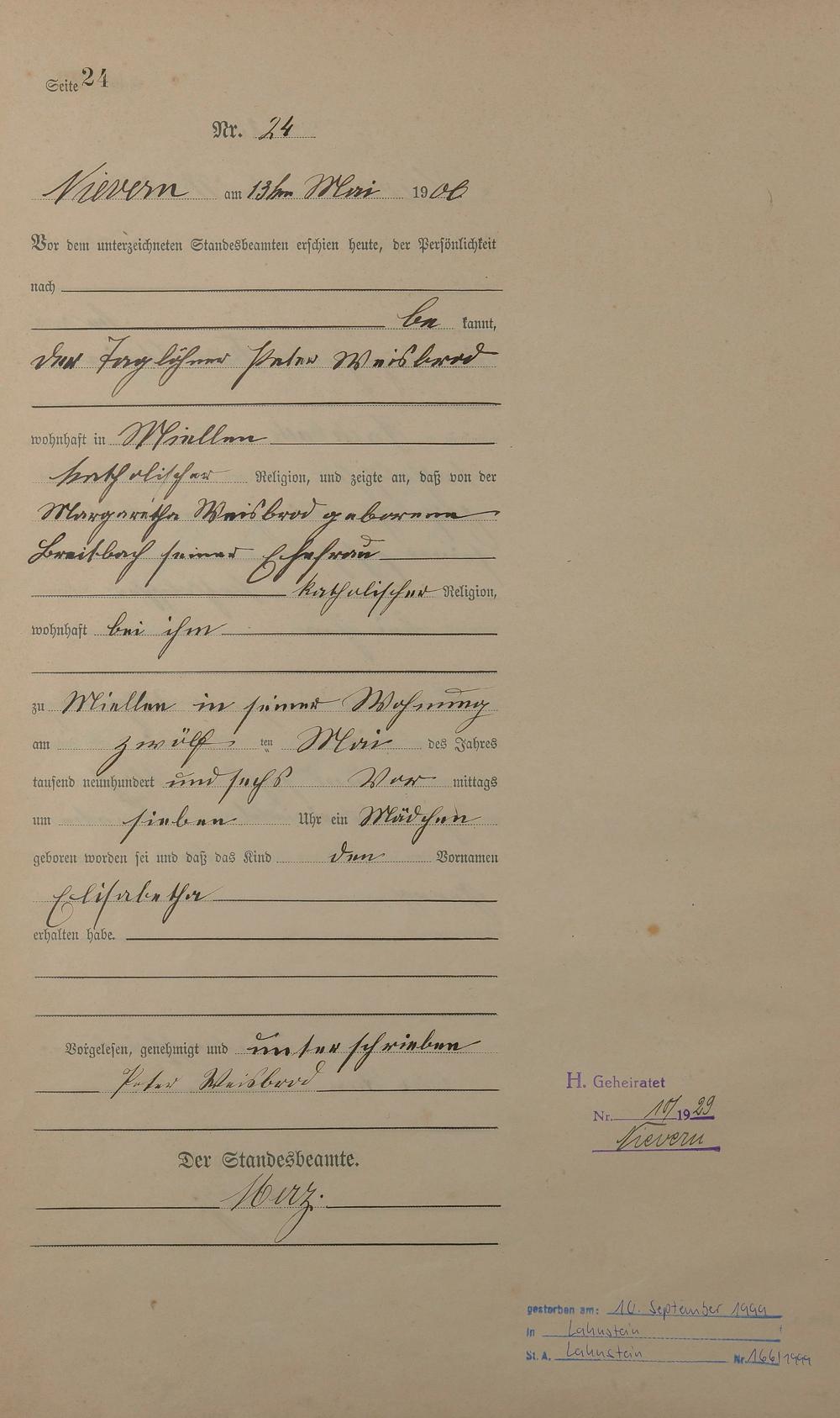 Geburtsregister 1906