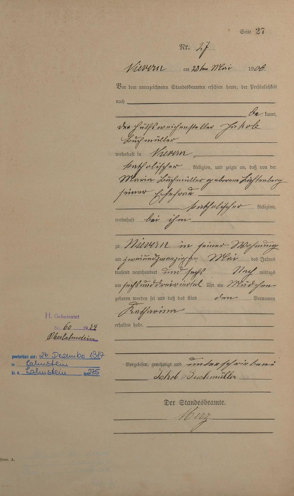 Geburtsregister 1906