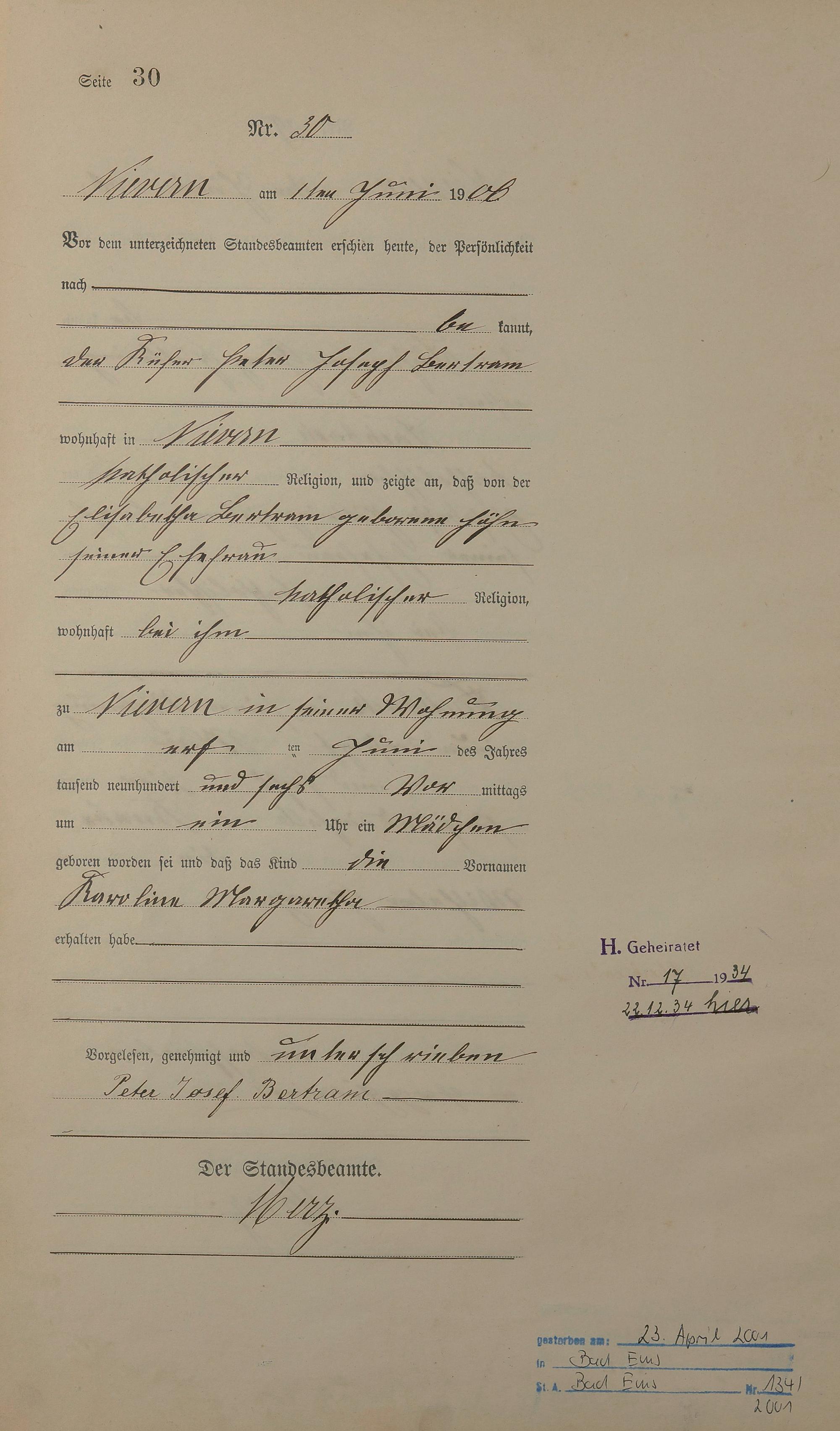 Geburtsregister 1906