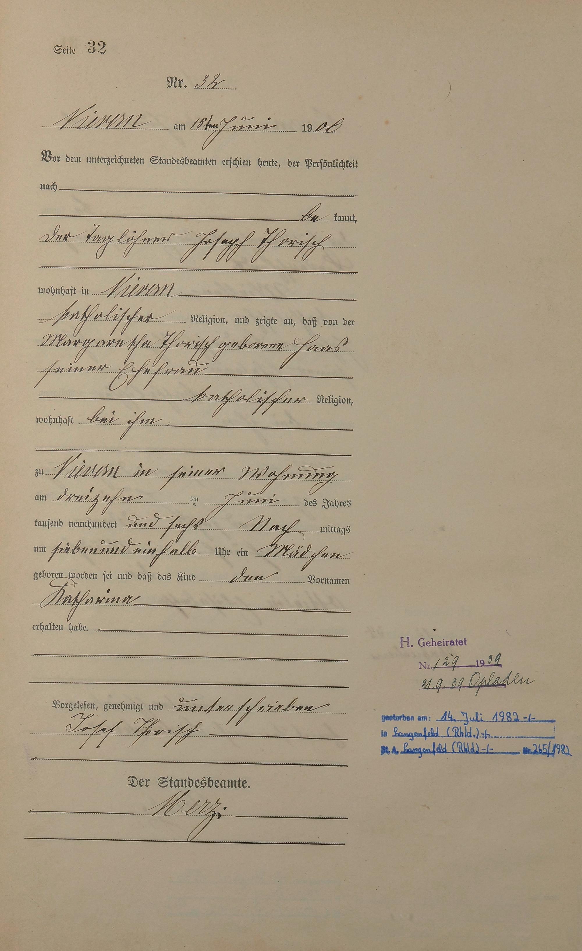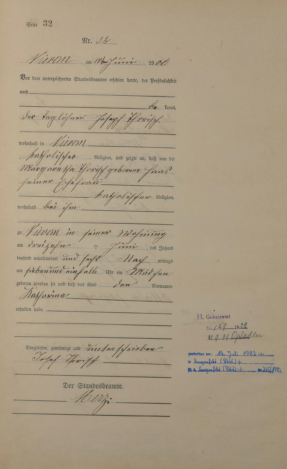 Geburtsregister 1906