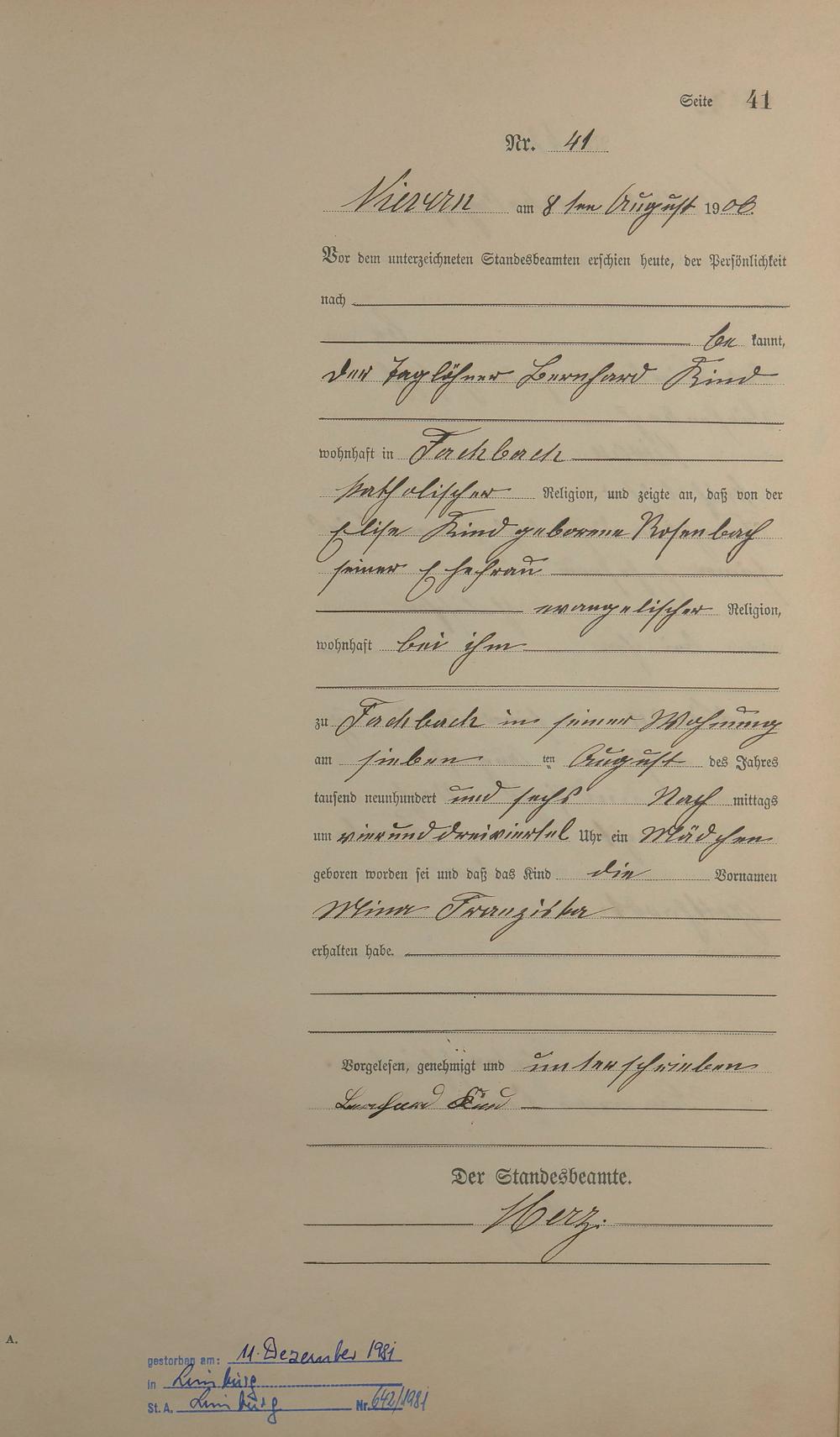Geburtsregister 1906