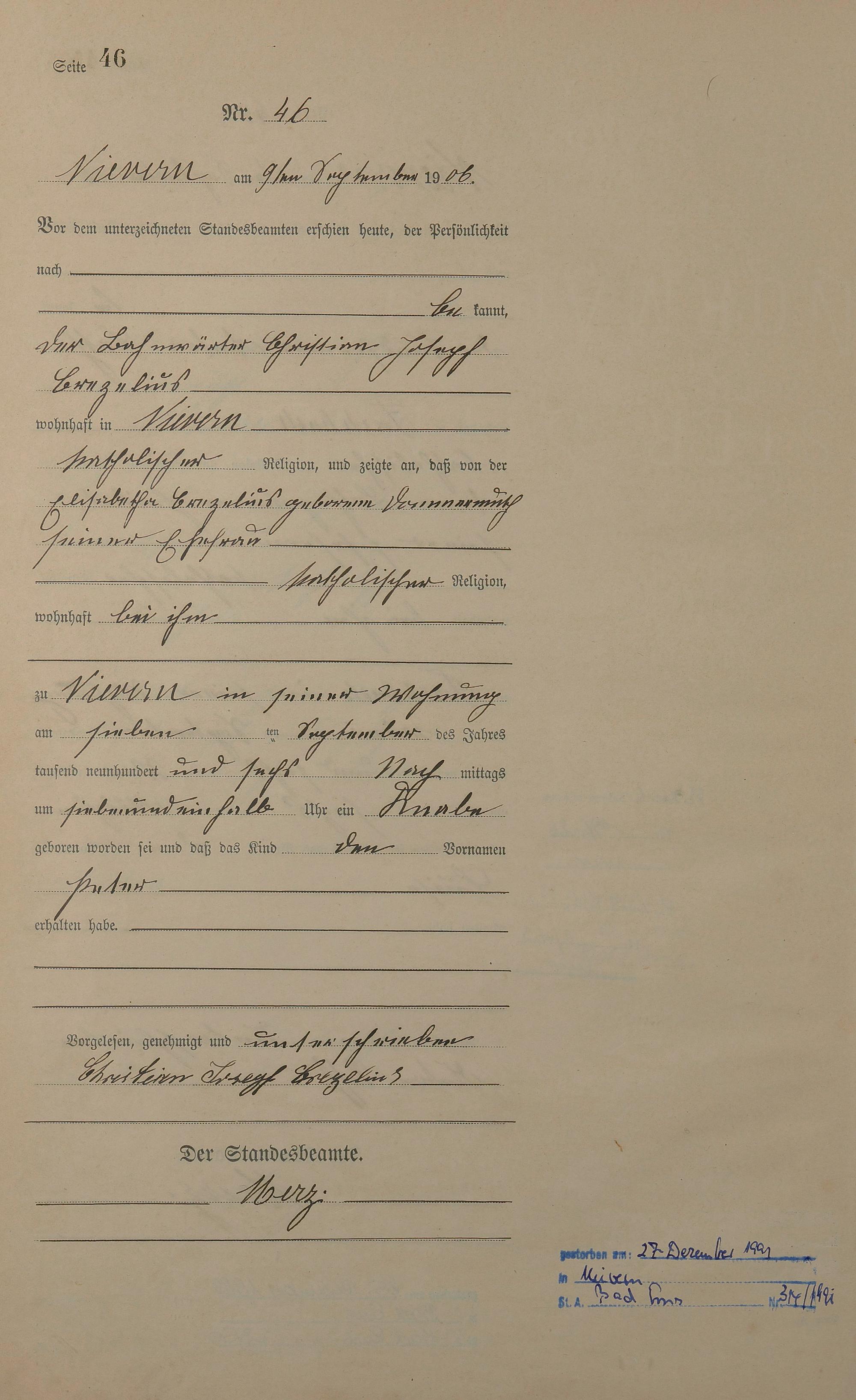 Geburtsregister 1906