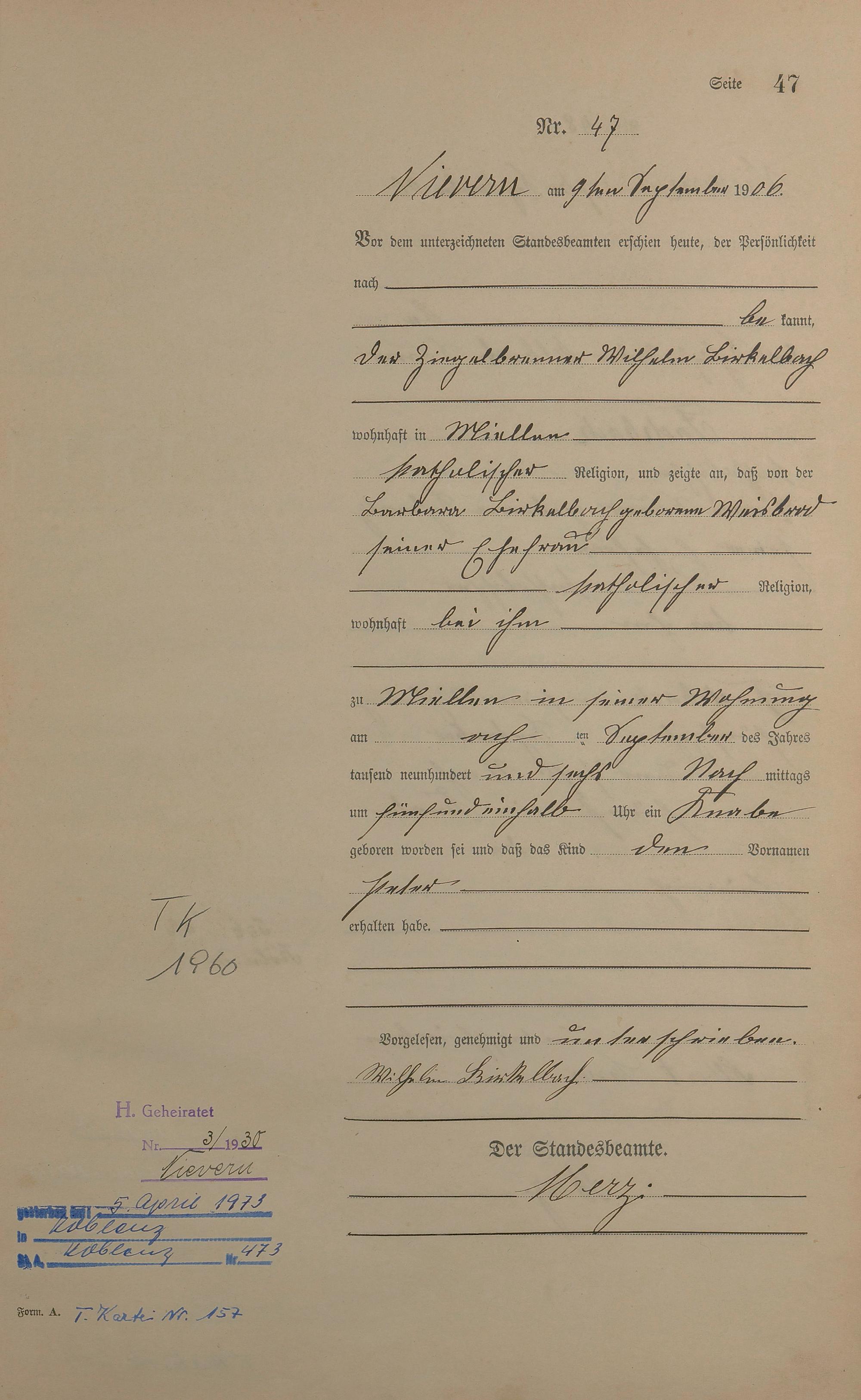 Geburtsregister 1906