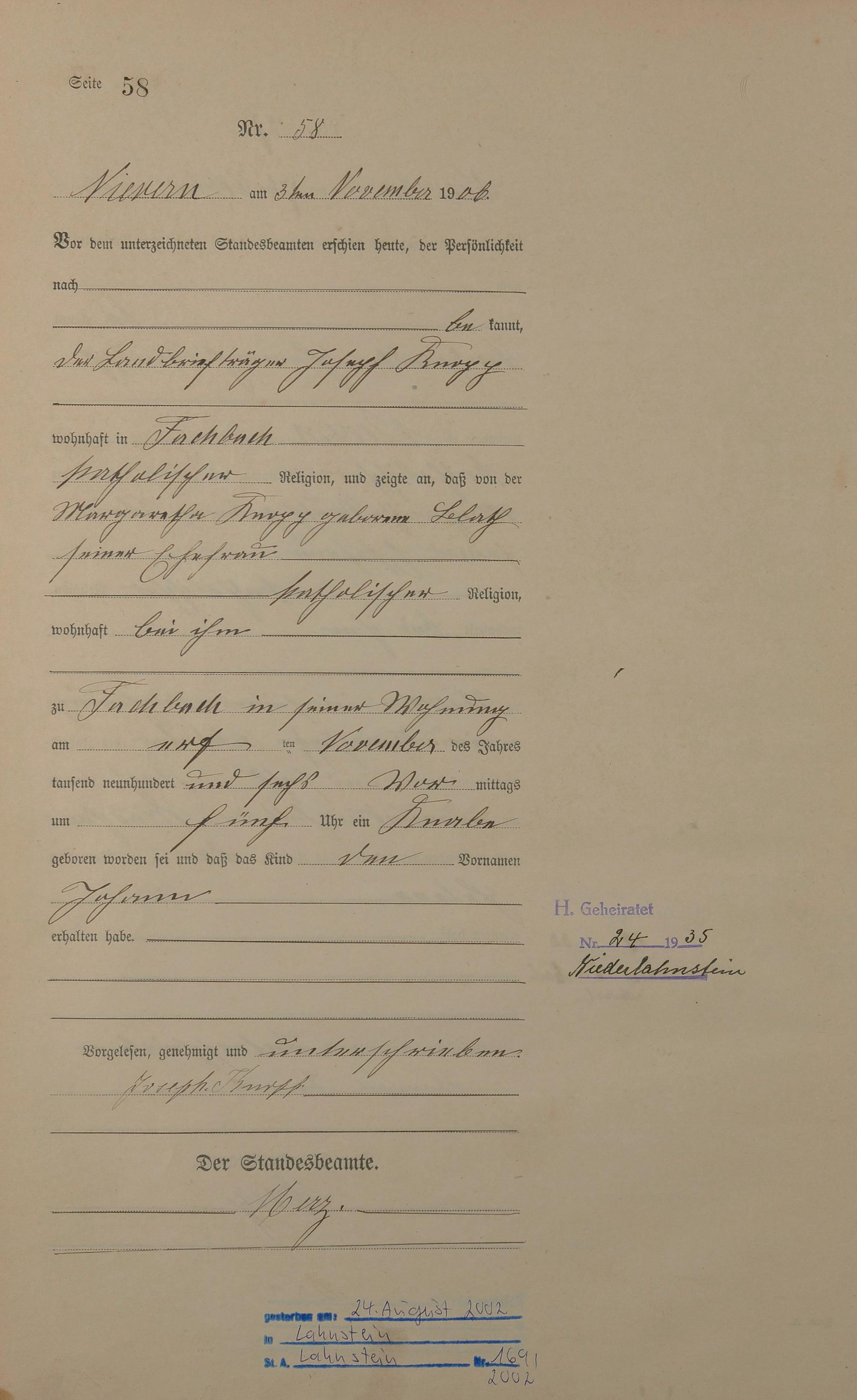 Geburtsregister 1906