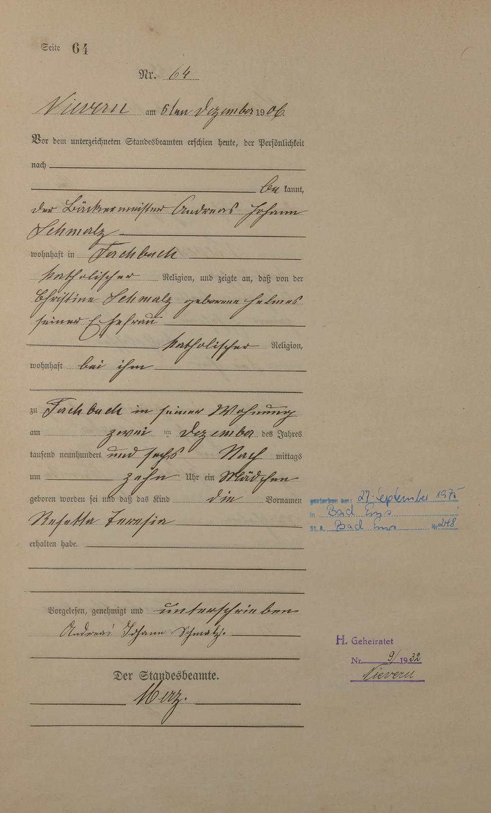 Geburtsregister 1906