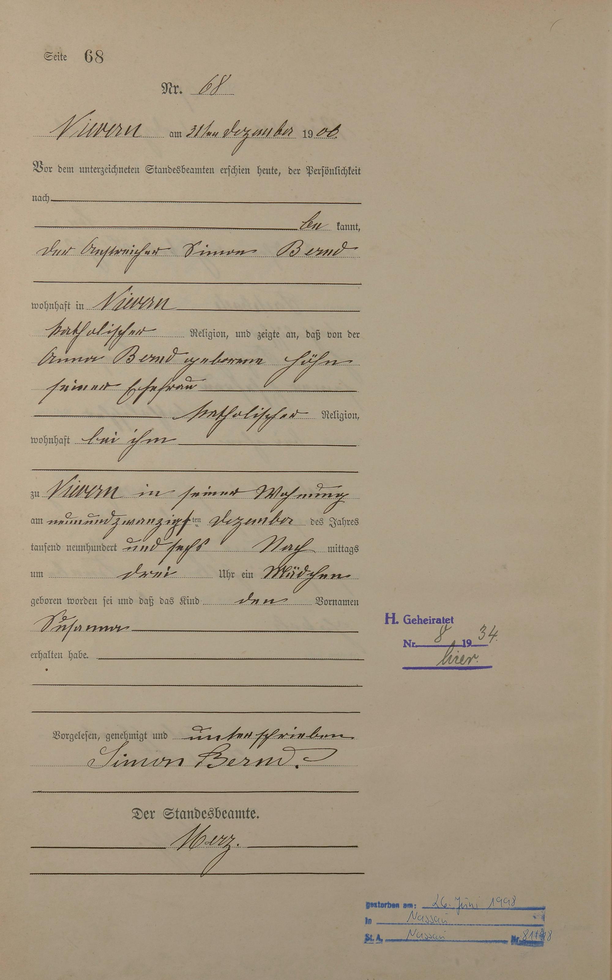 Geburtsregister 1906