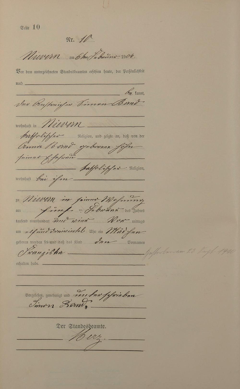 Geburtsregister 1904