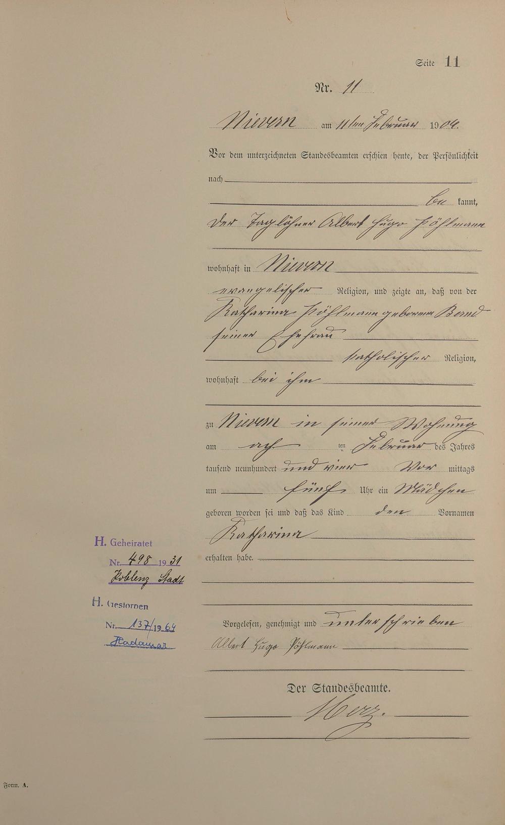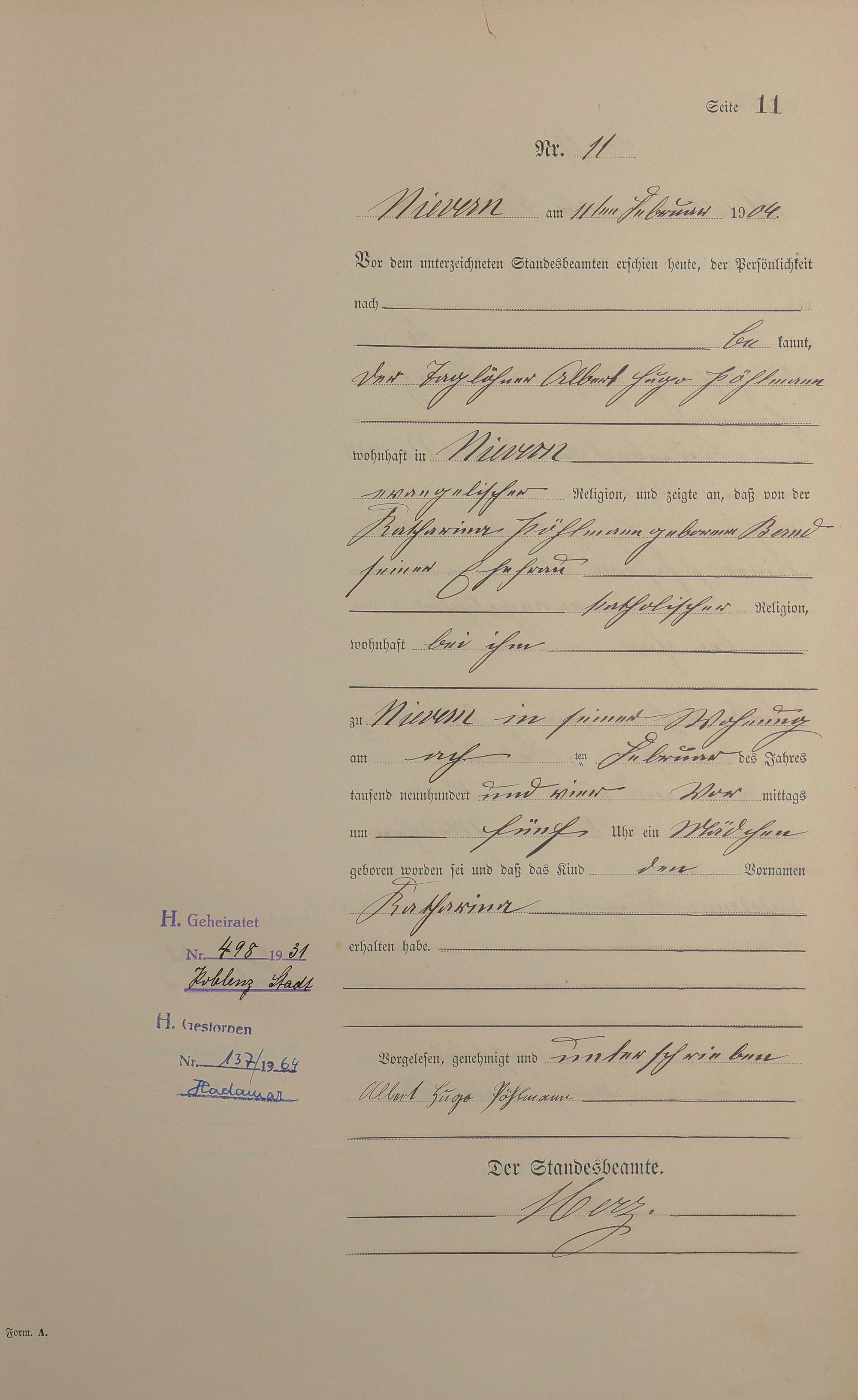 Geburtsregister 1904