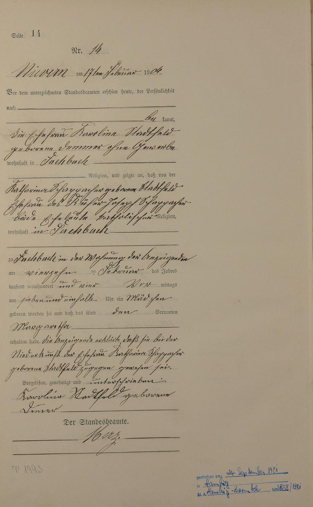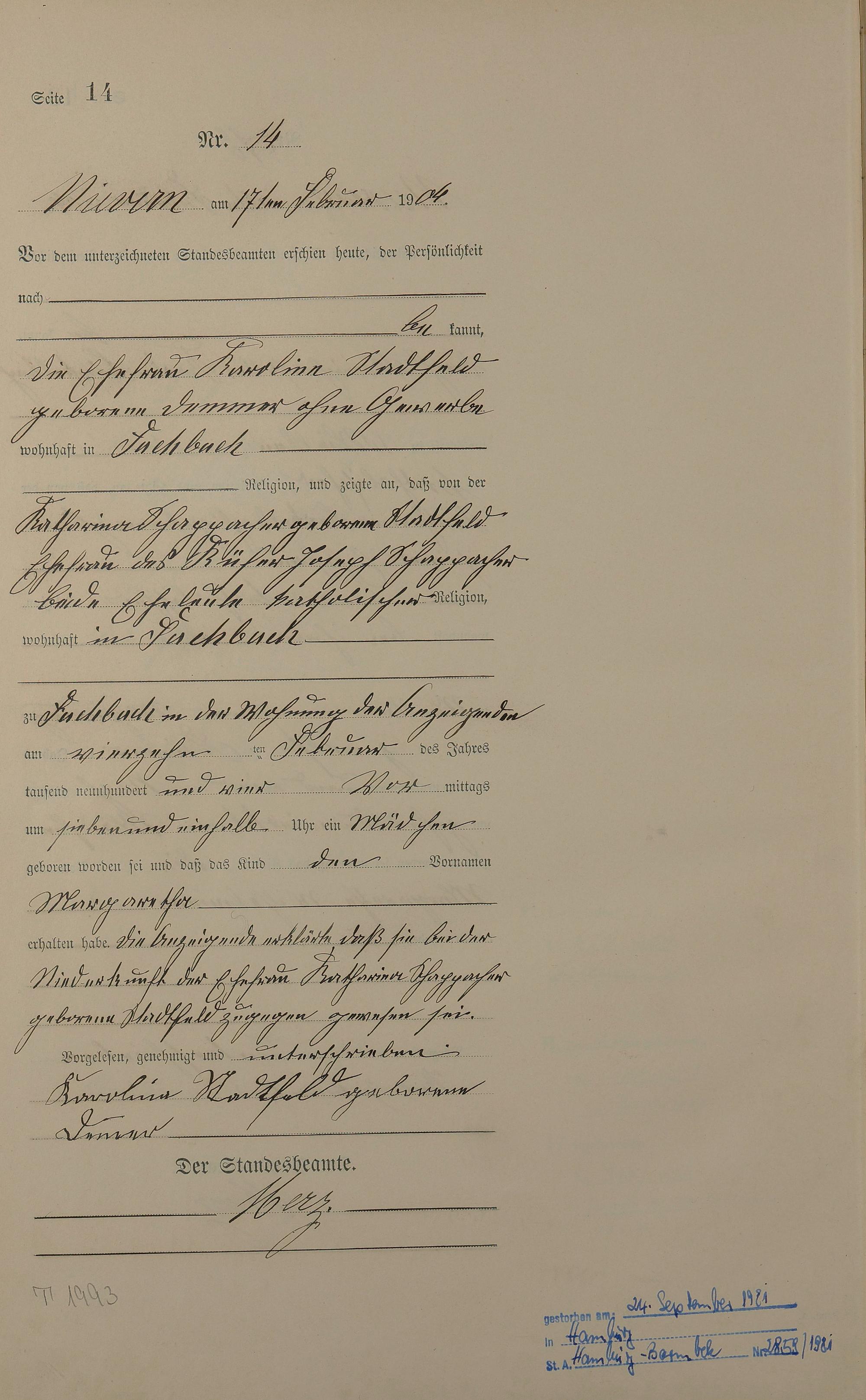 Geburtsregister 1904