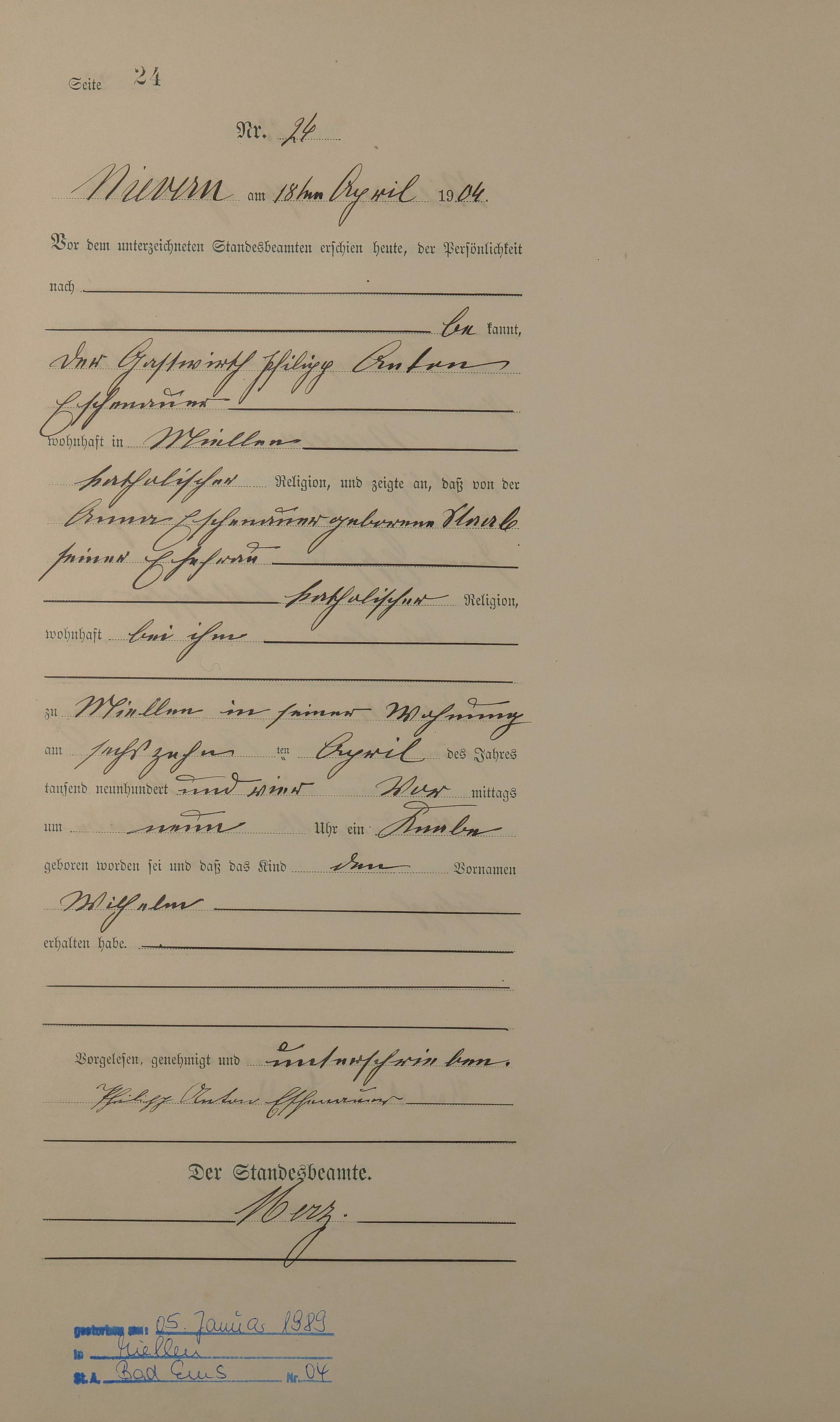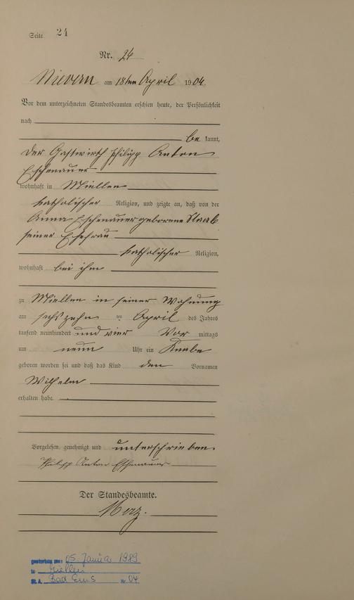 Geburtsregister 1904