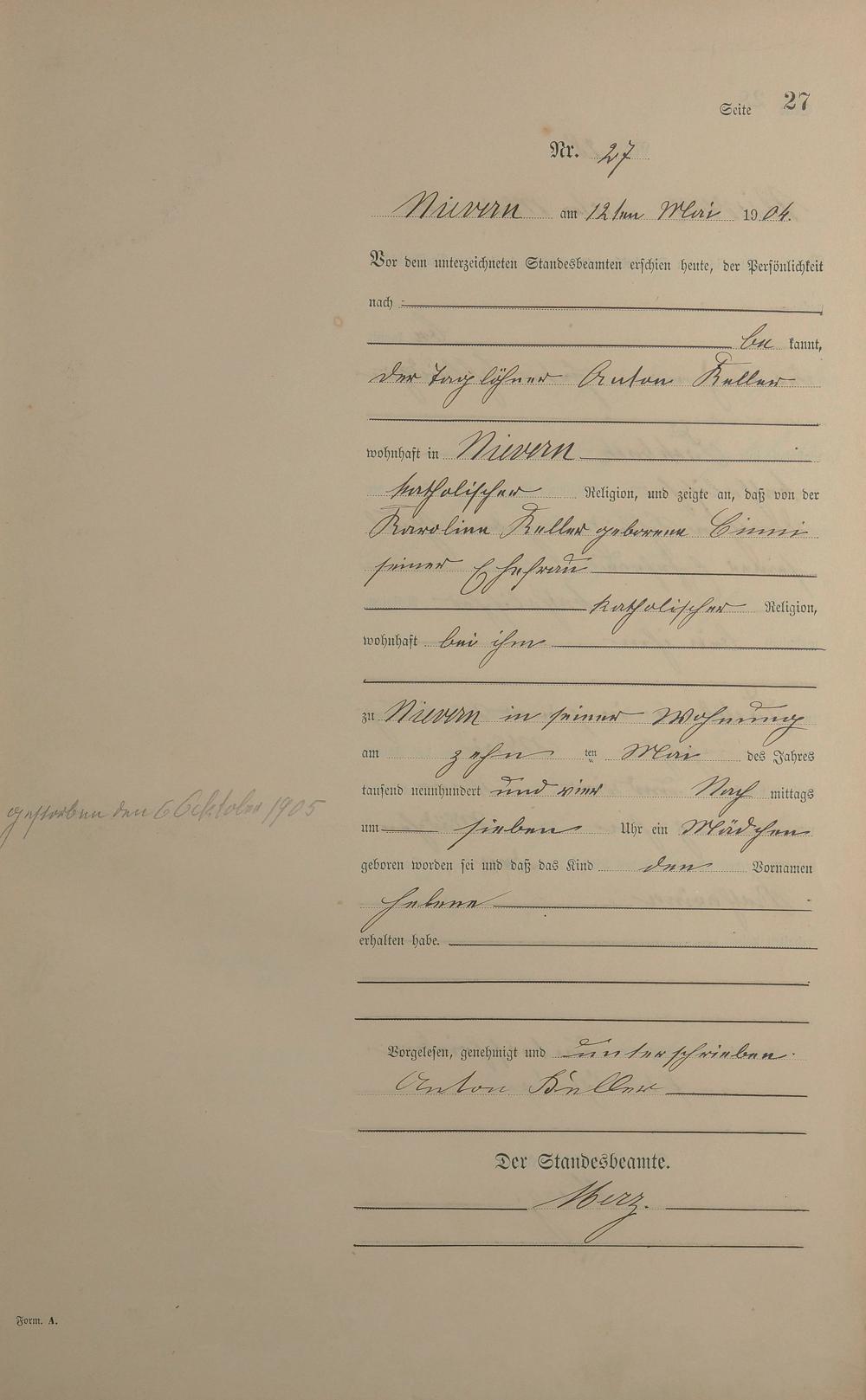 Geburtsregister 1904