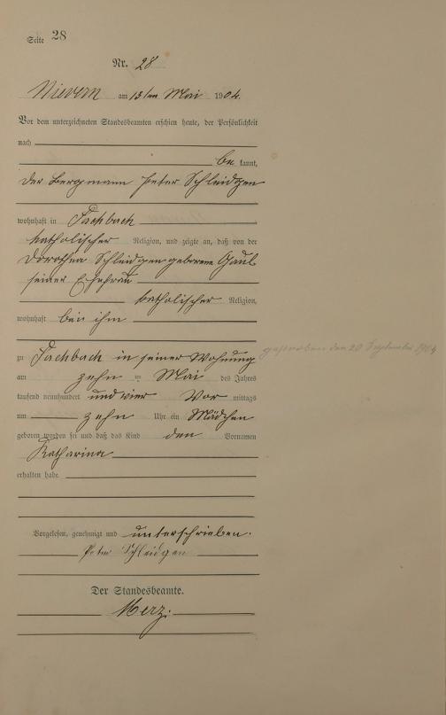 Geburtsregister 1904