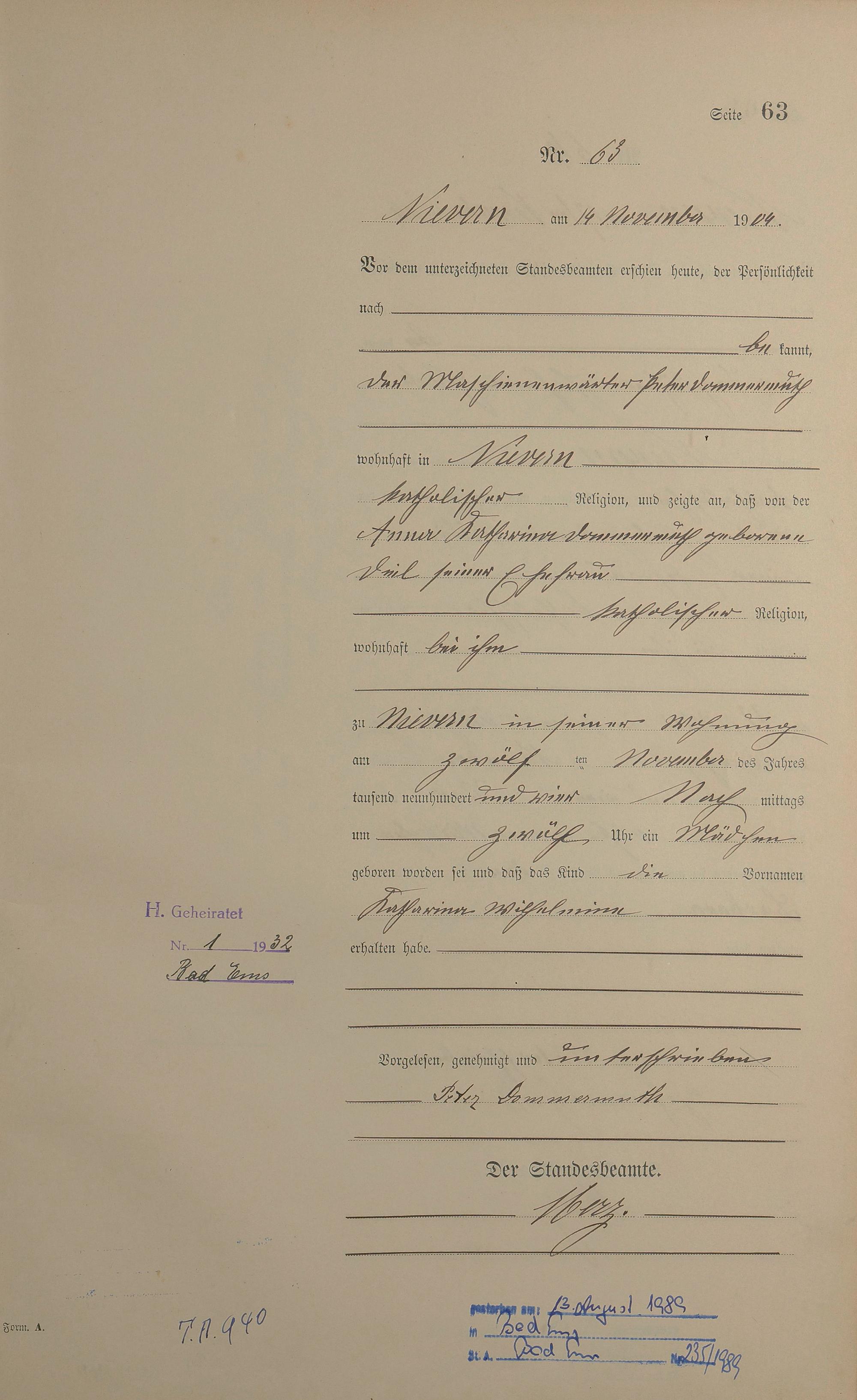 Geburtsregister 1904