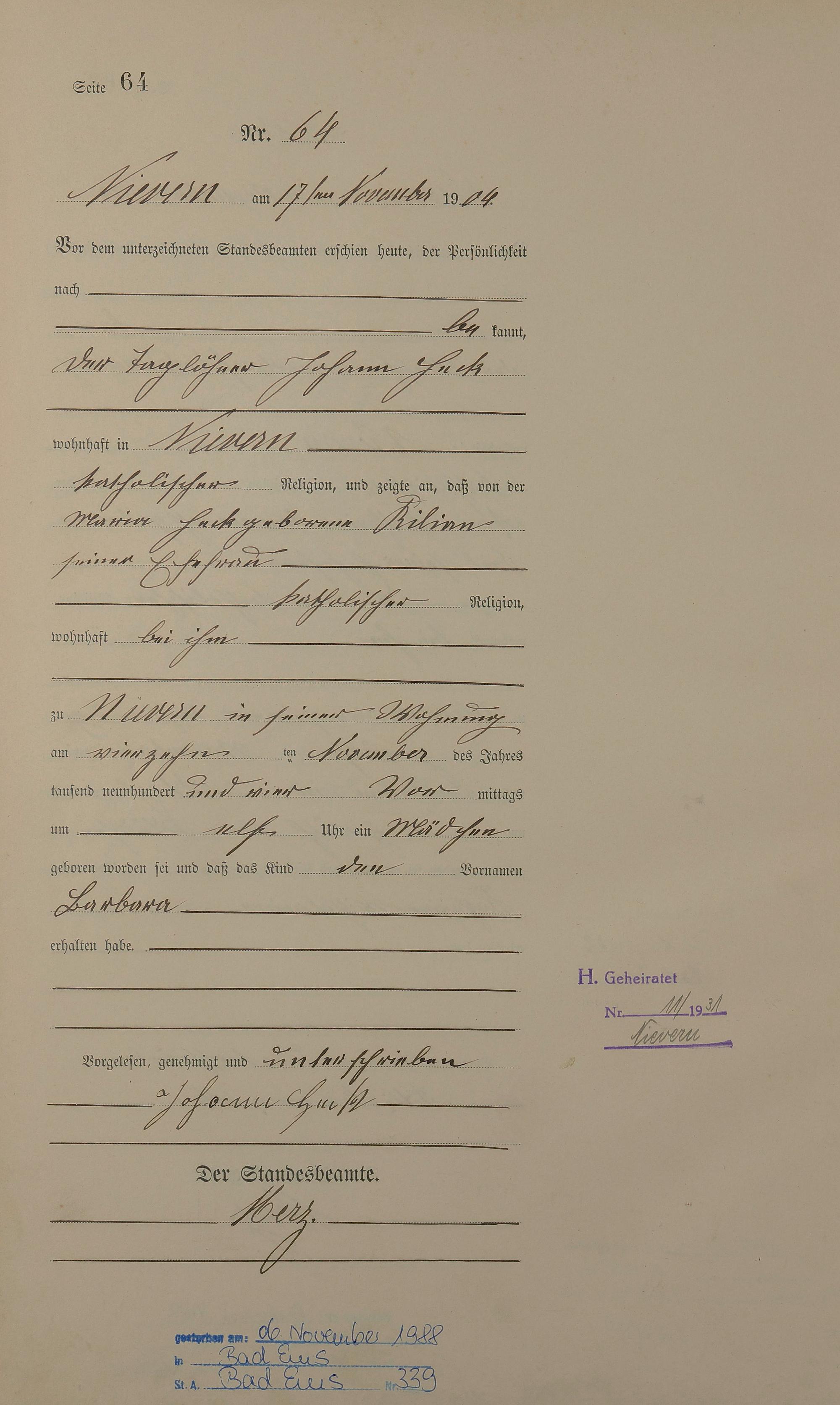 Geburtsregister 1904