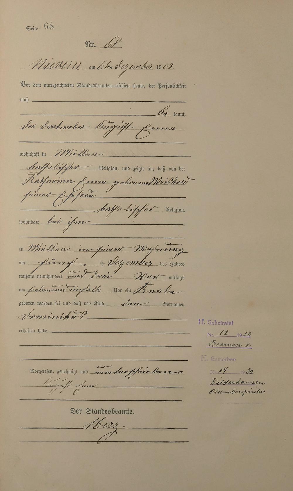 Geburtsregister 1903
