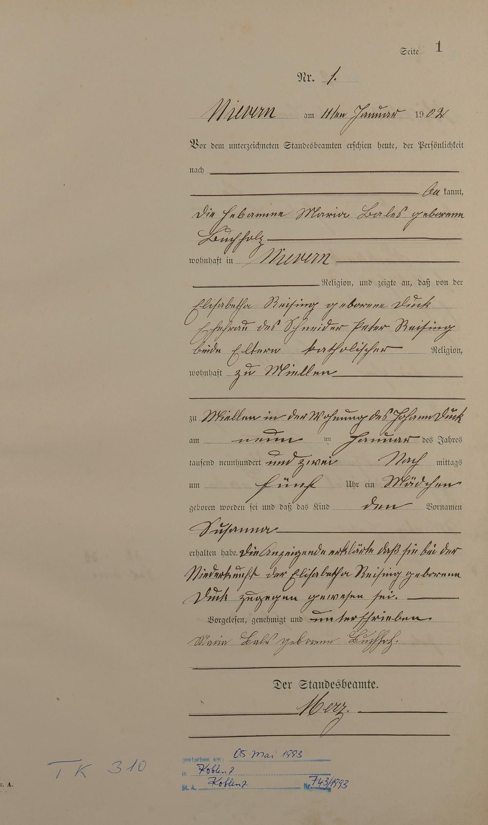 Geburtsregister 1902