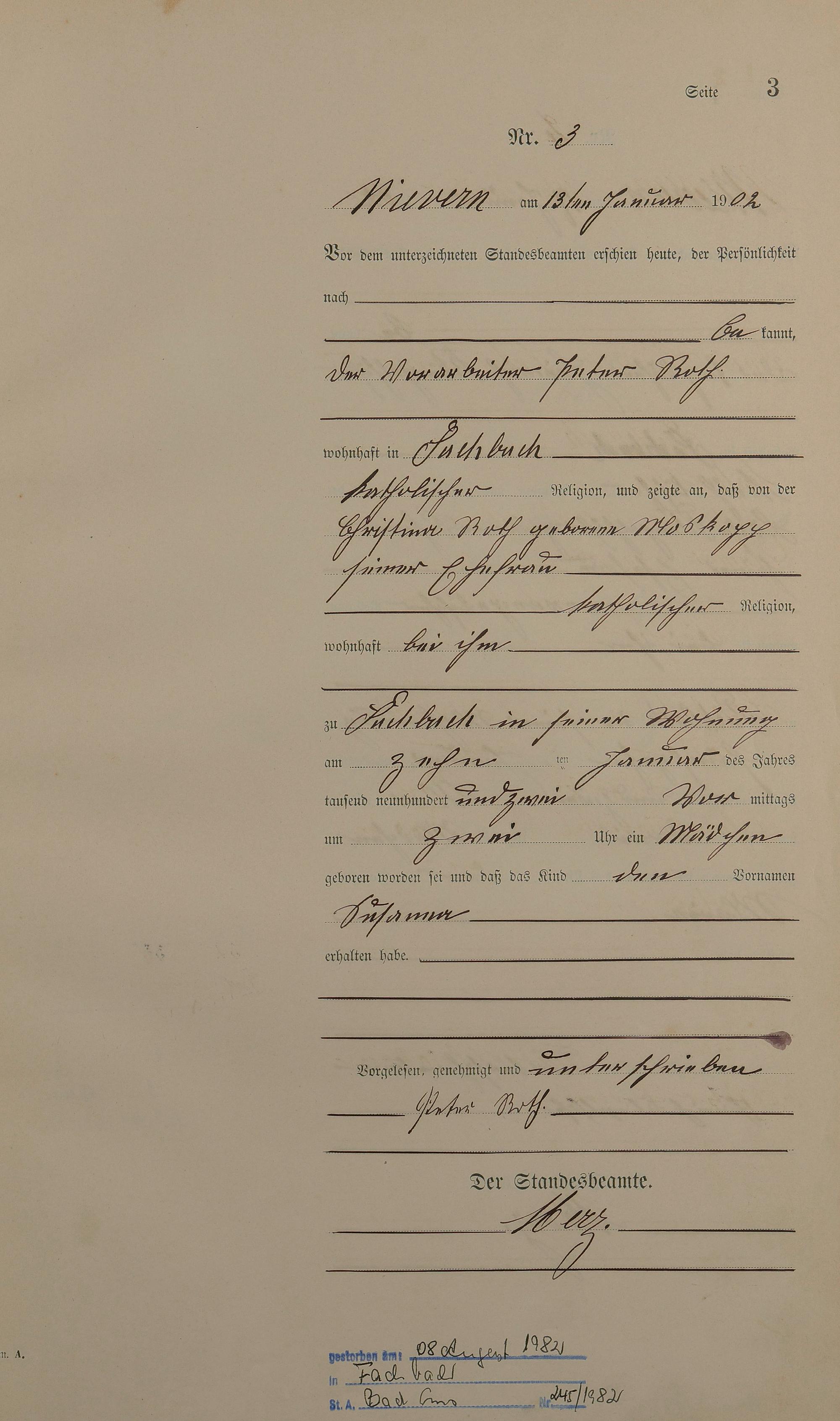Geburtsregister 1902