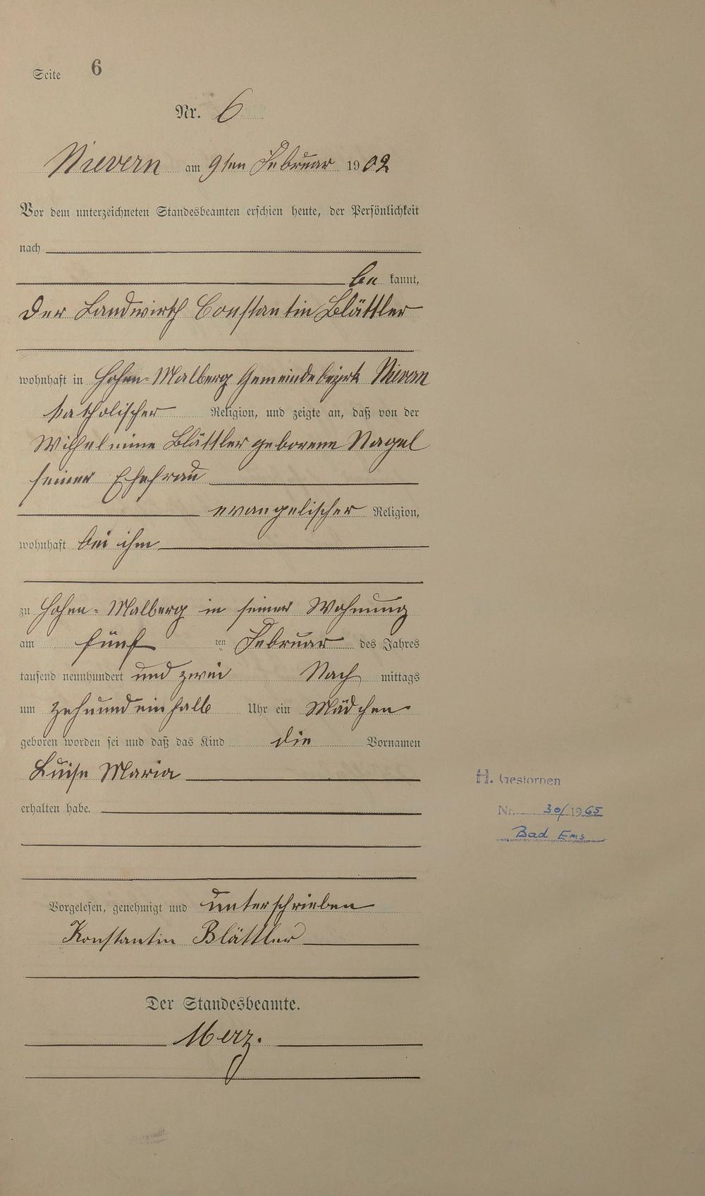 Geburtsregister 1902