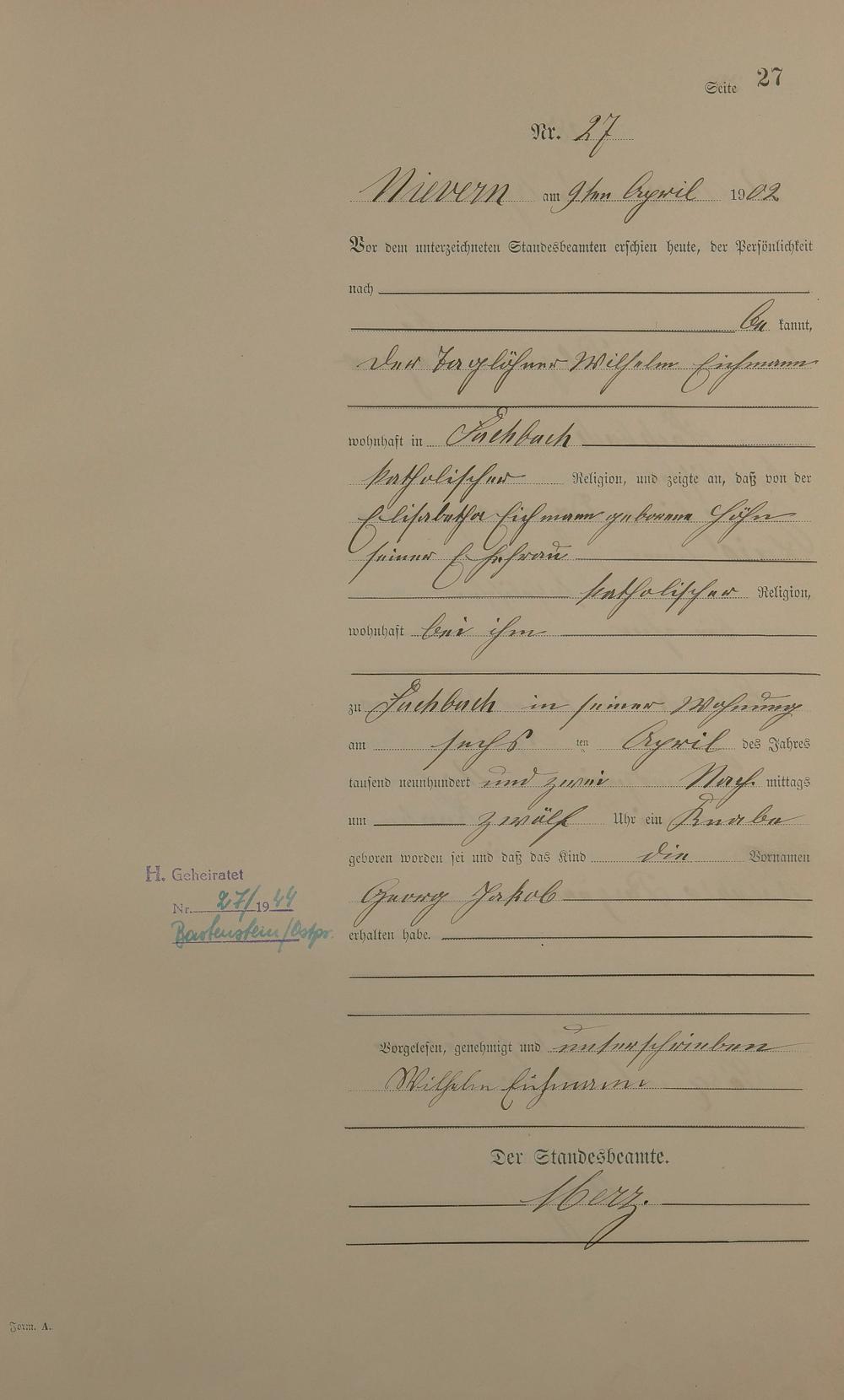 Geburtsregister 1902