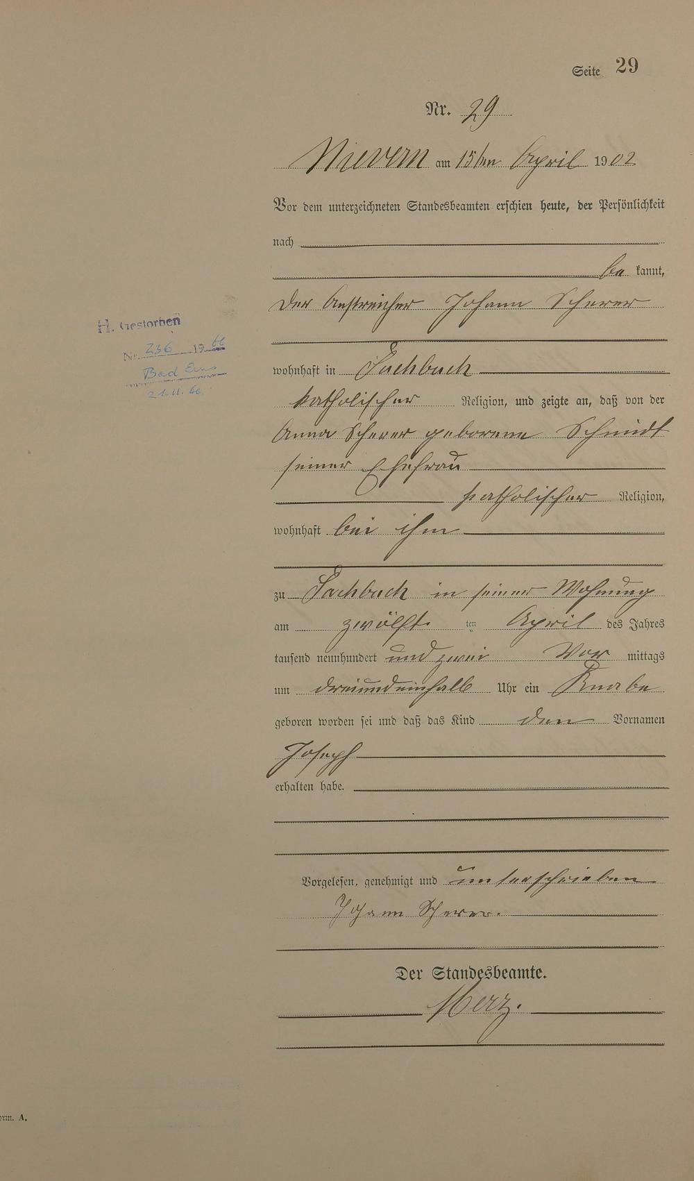 Geburtsregister 1902