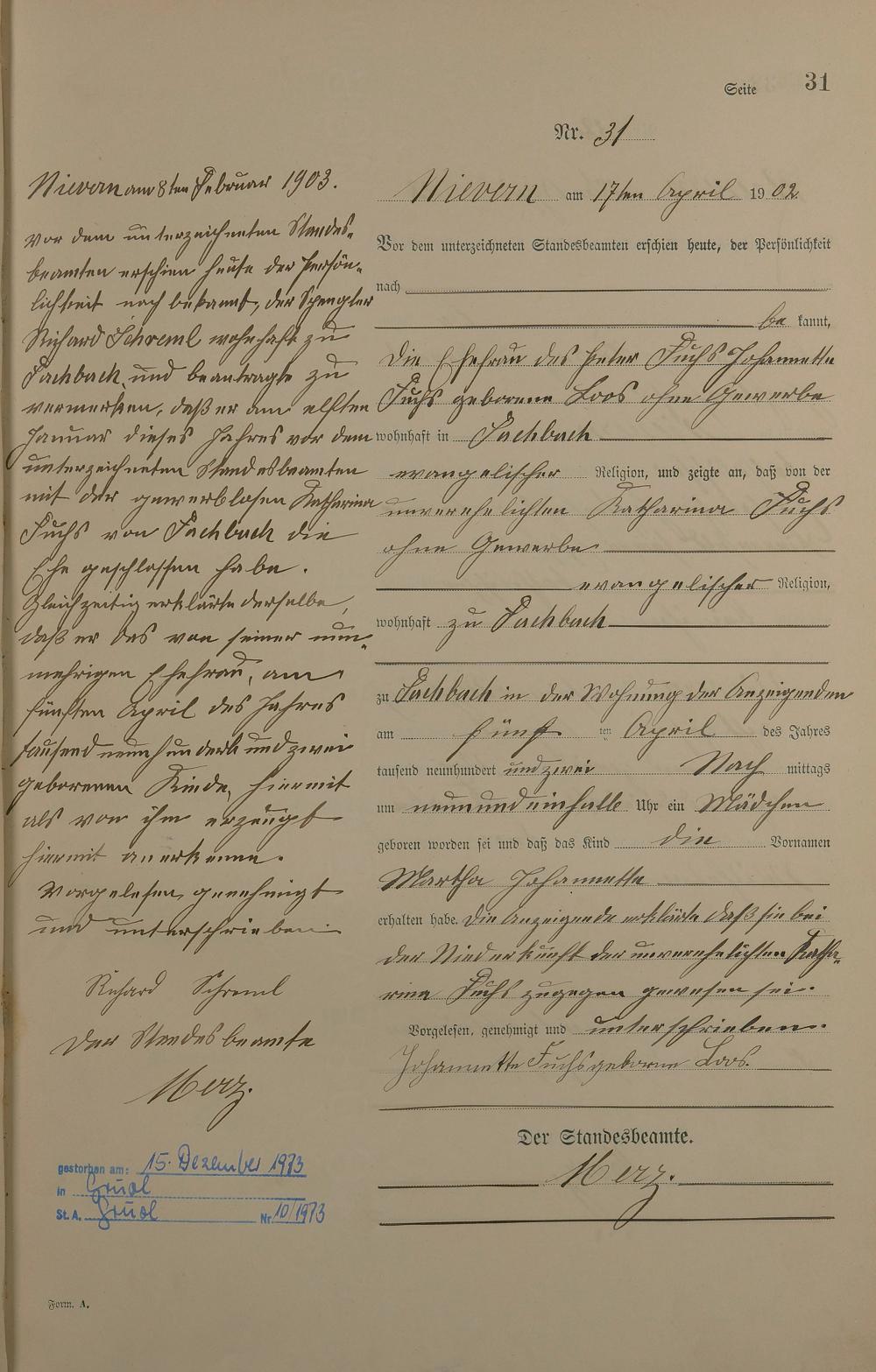 Geburtsregister 1902