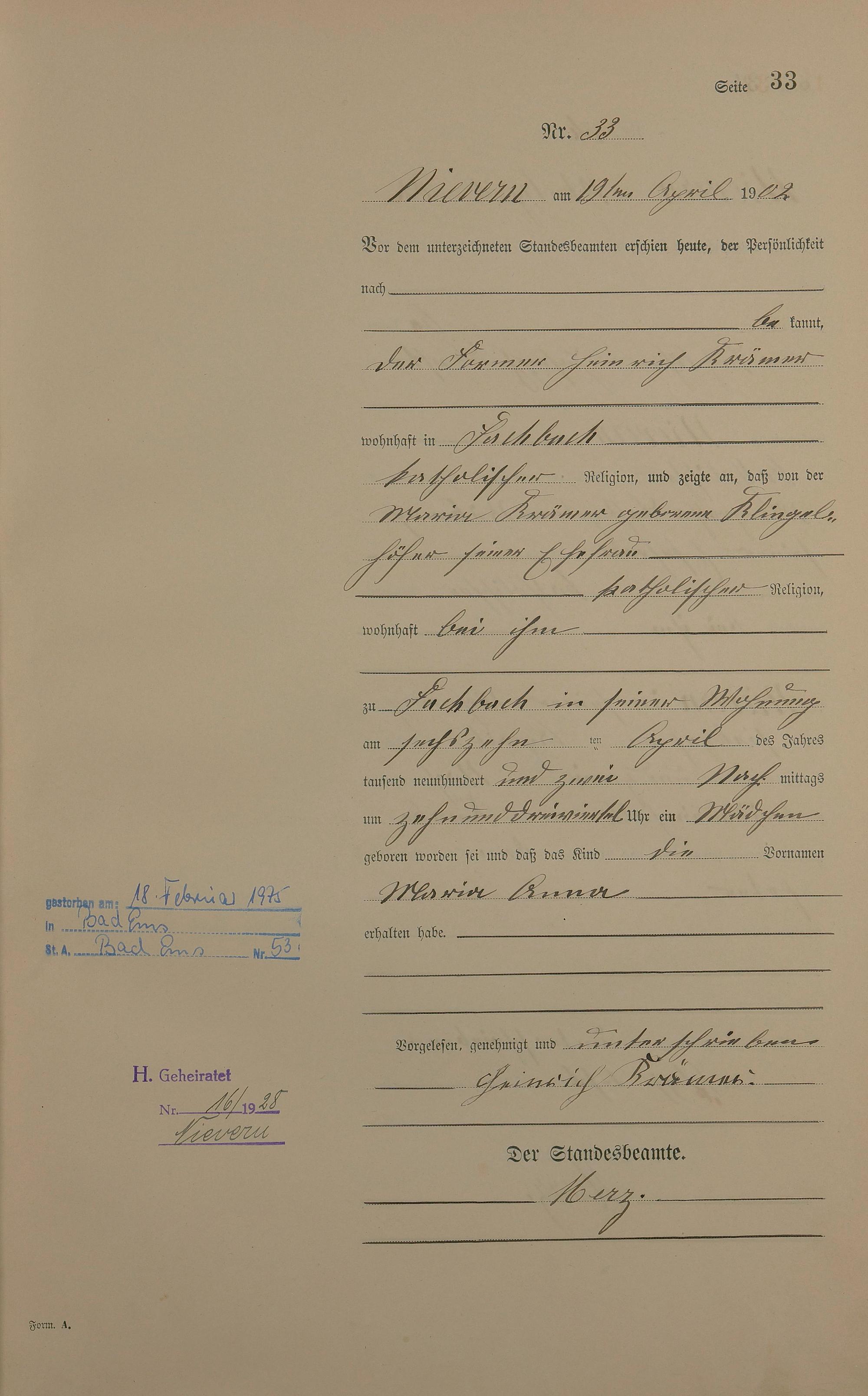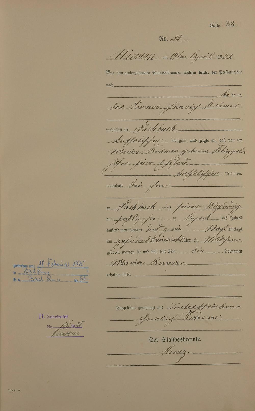 Geburtsregister 1902
