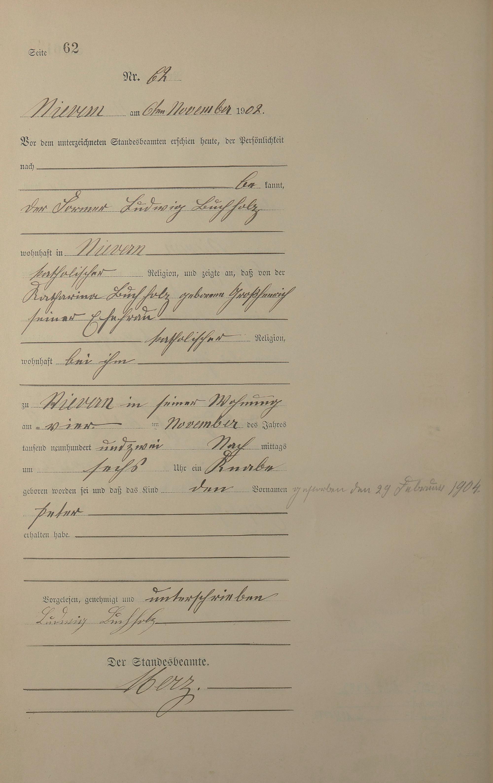 Geburtsregister 1902