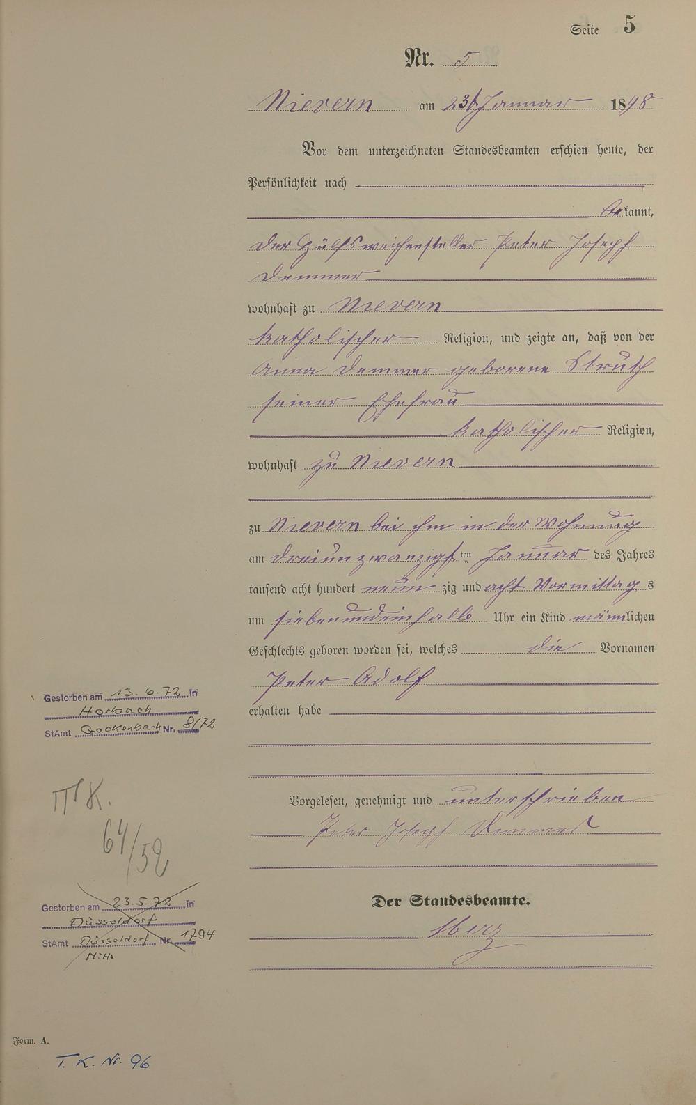 Geburtsregister 1898
