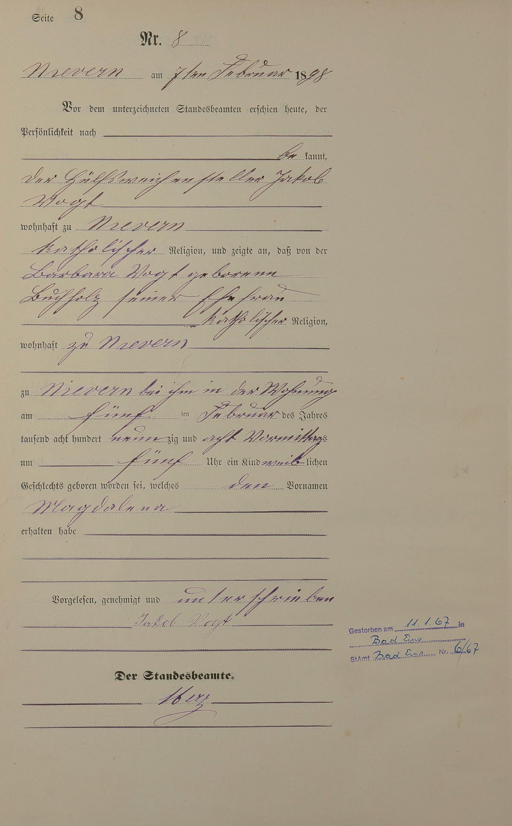 Geburtsregister 1898