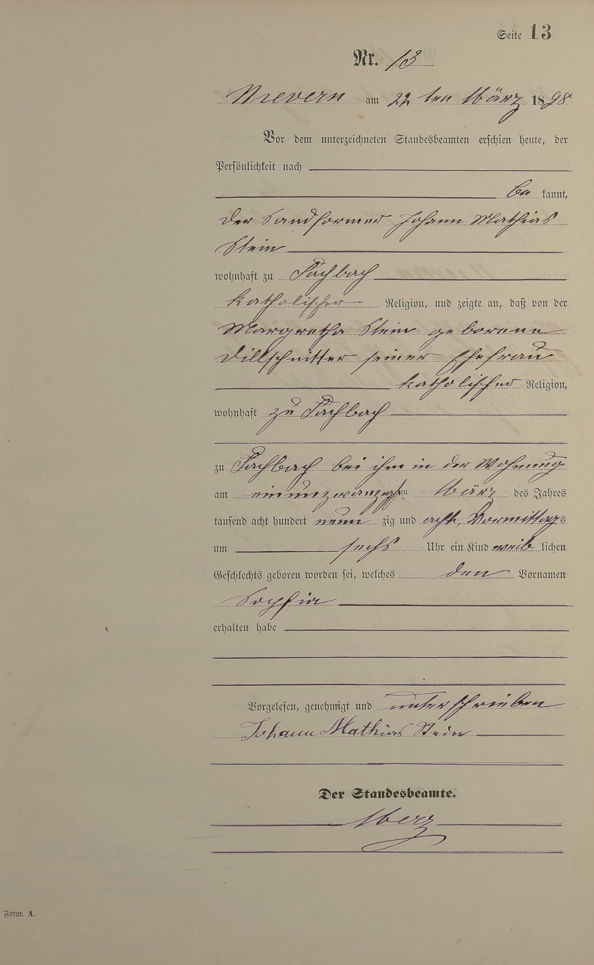 Geburtsregister 1898