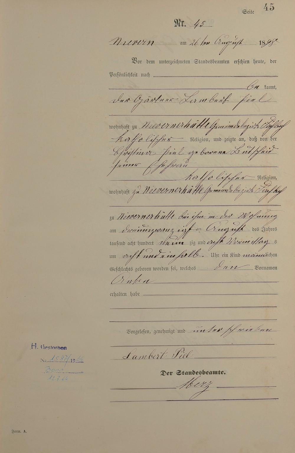 Geburtsregister 1898