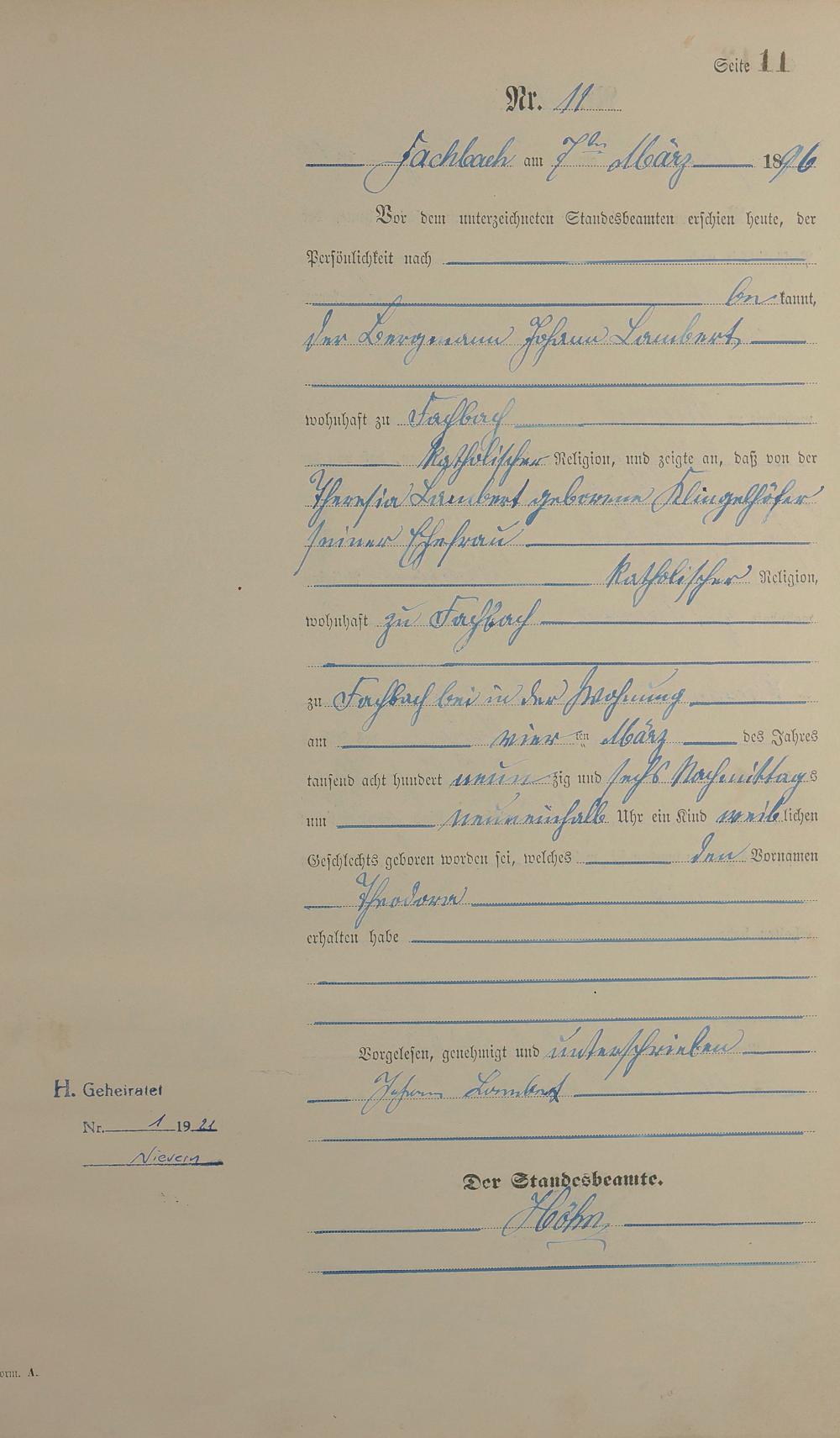 Geburtsregister 1896
