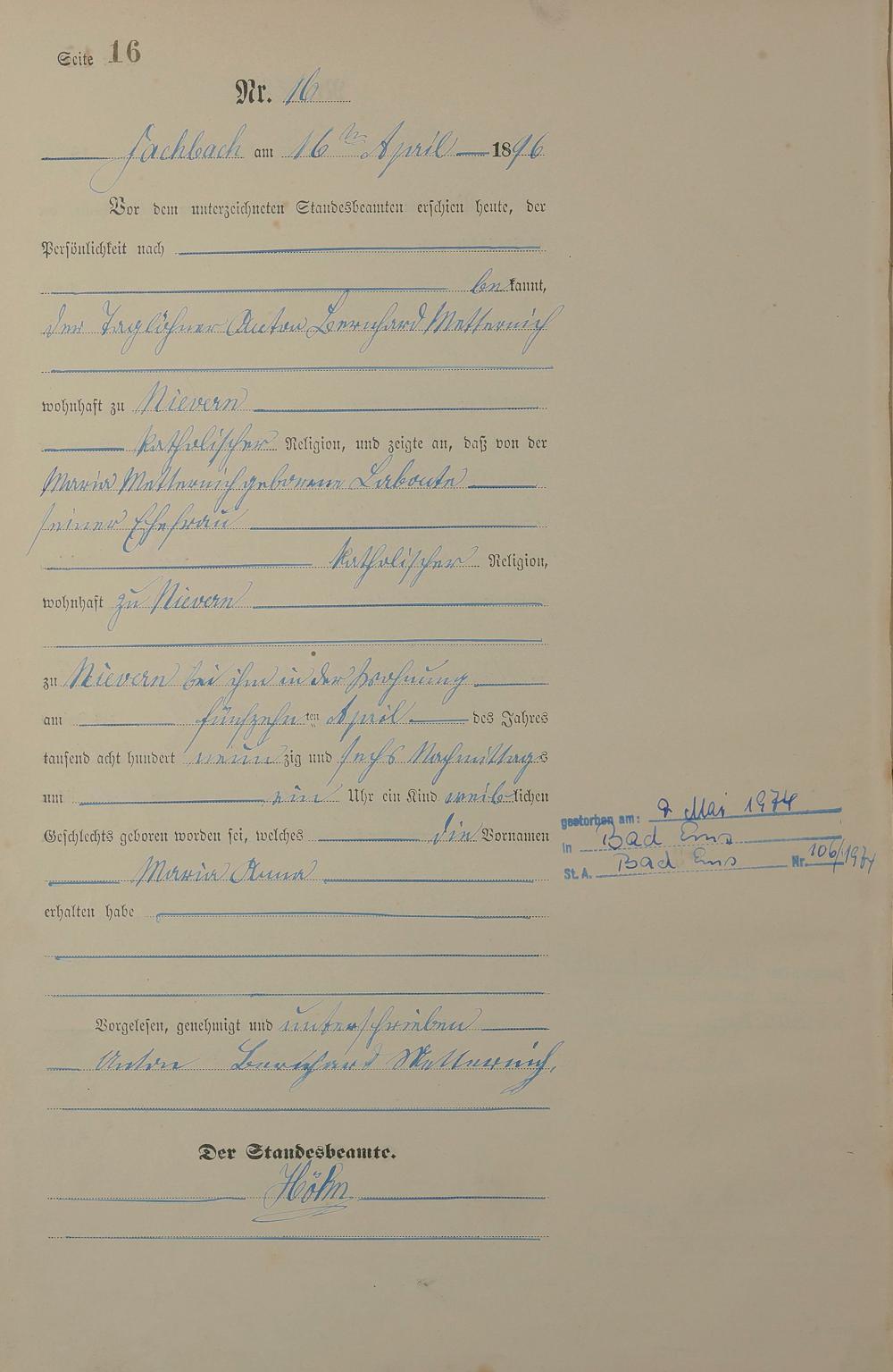 Geburtsregister 1896
