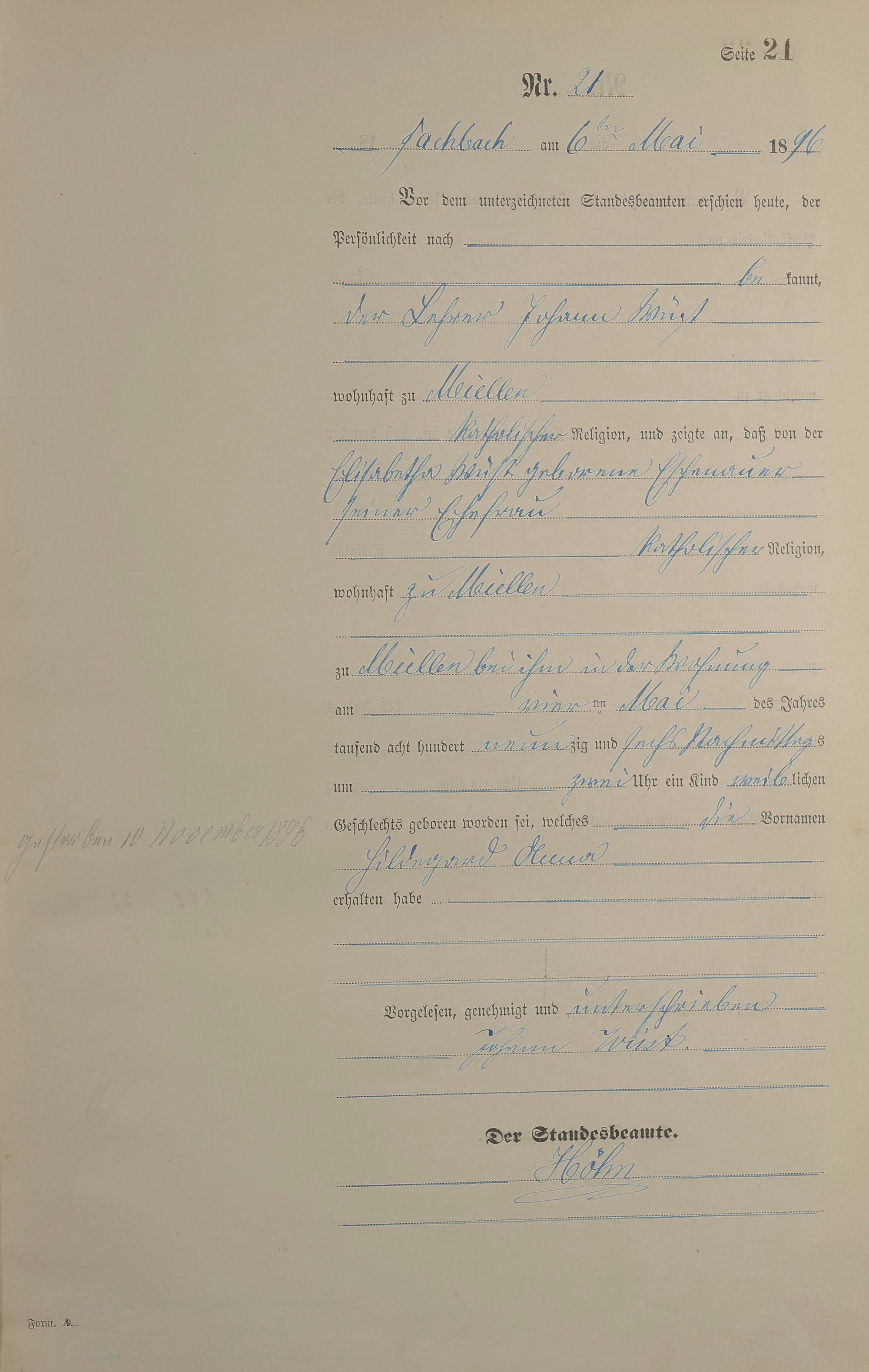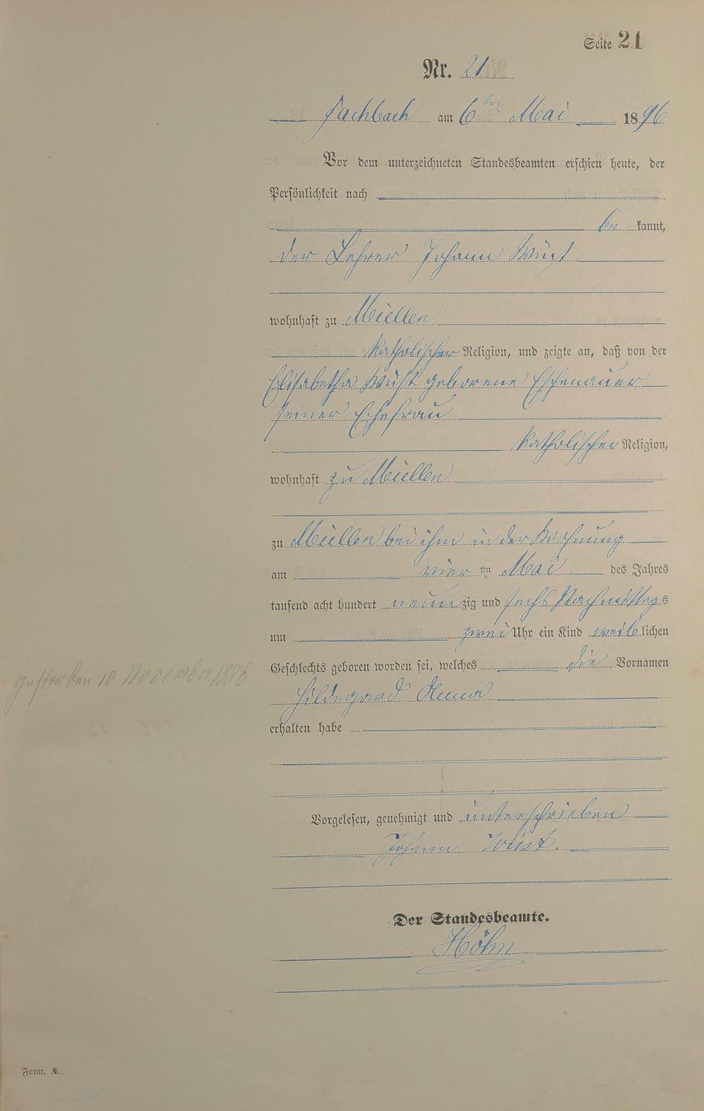 Geburtsregister 1896