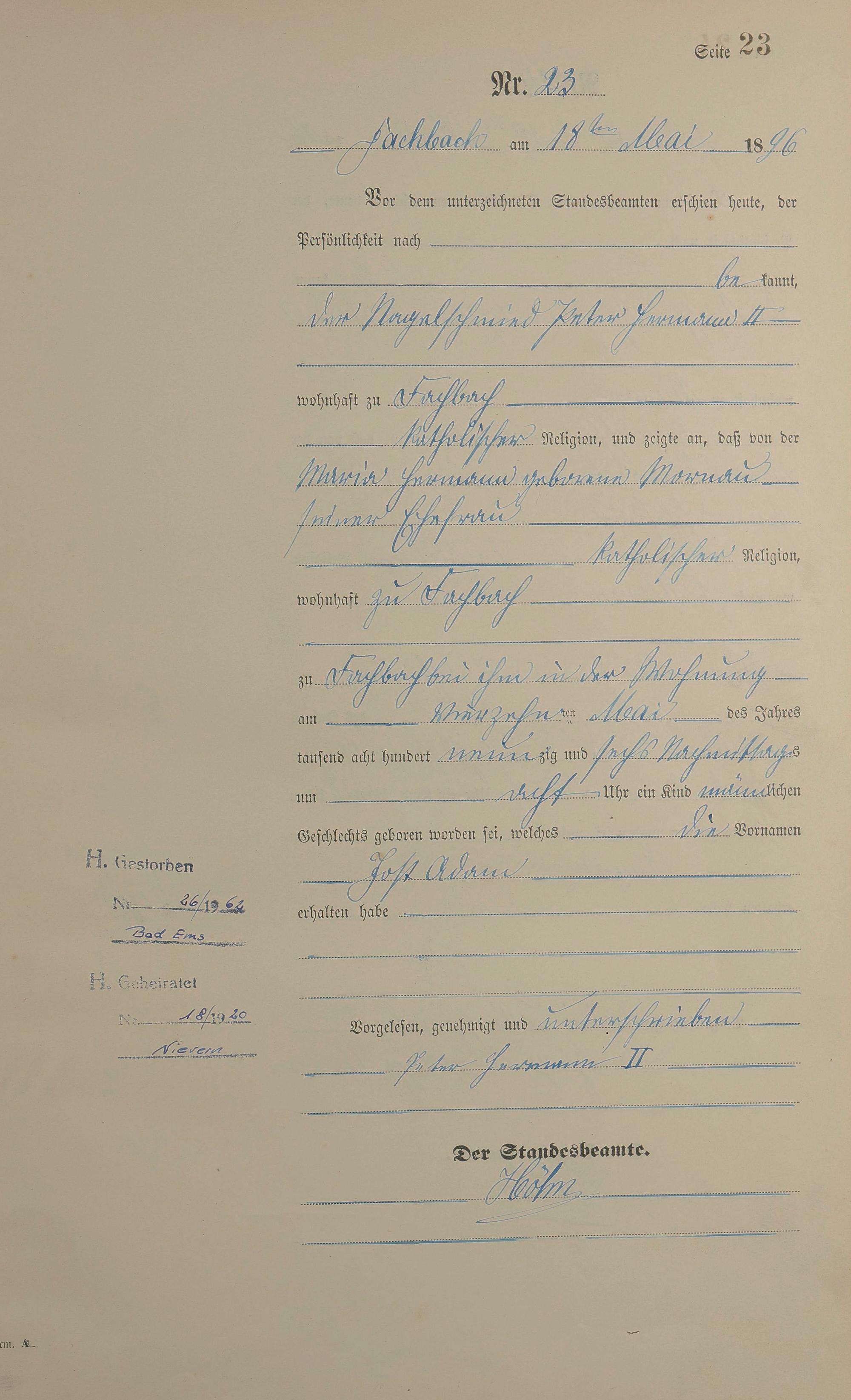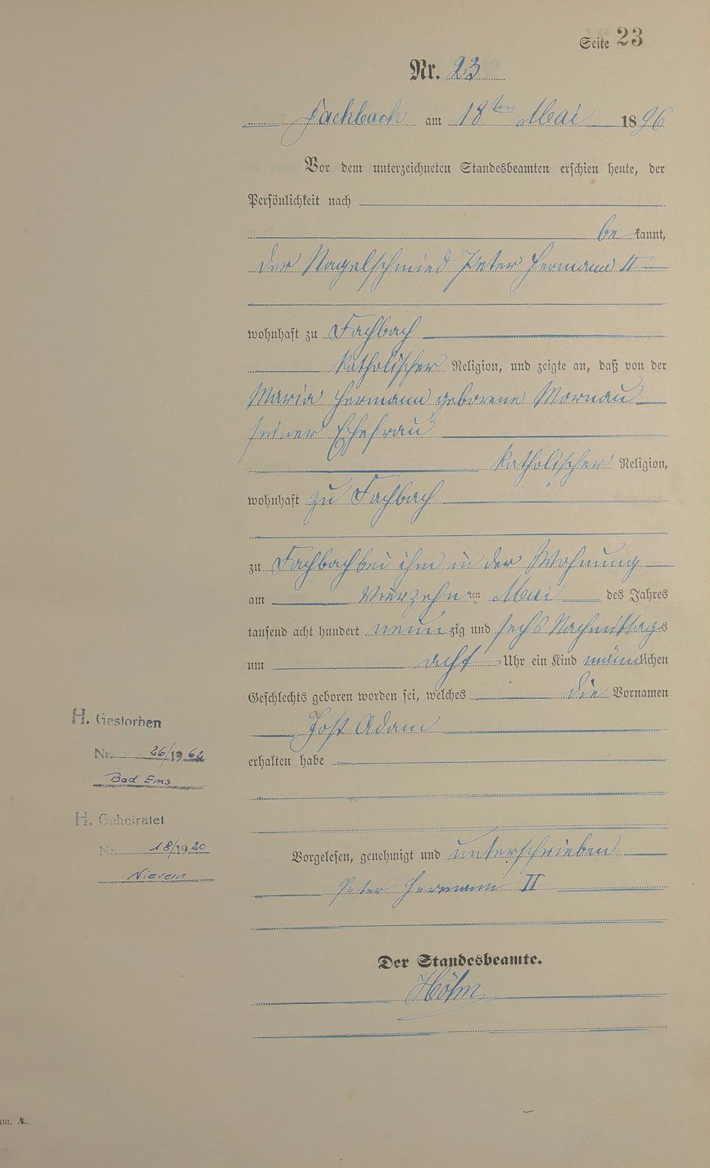 Geburtsregister 1896
