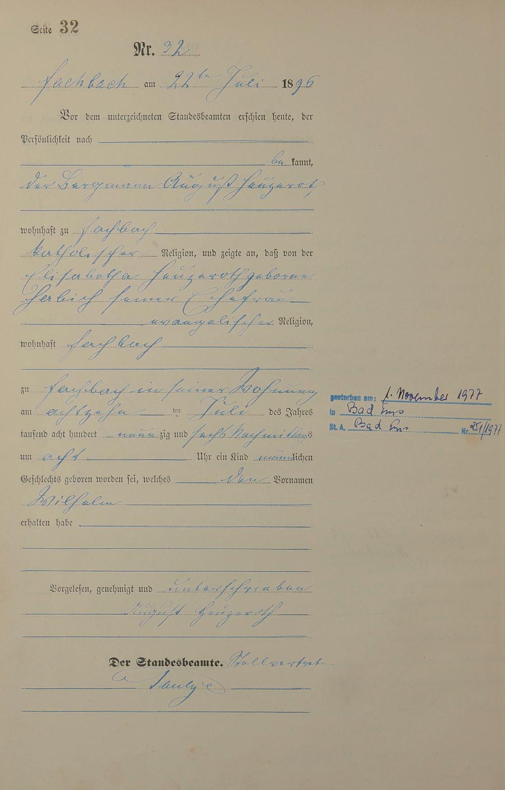 Geburtsregister 1896