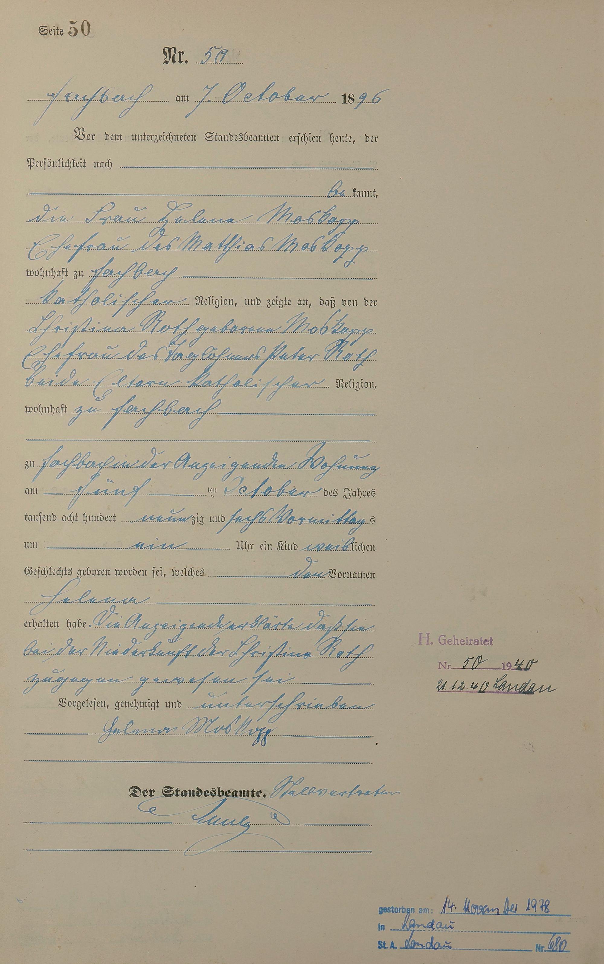 Geburtsregister 1896