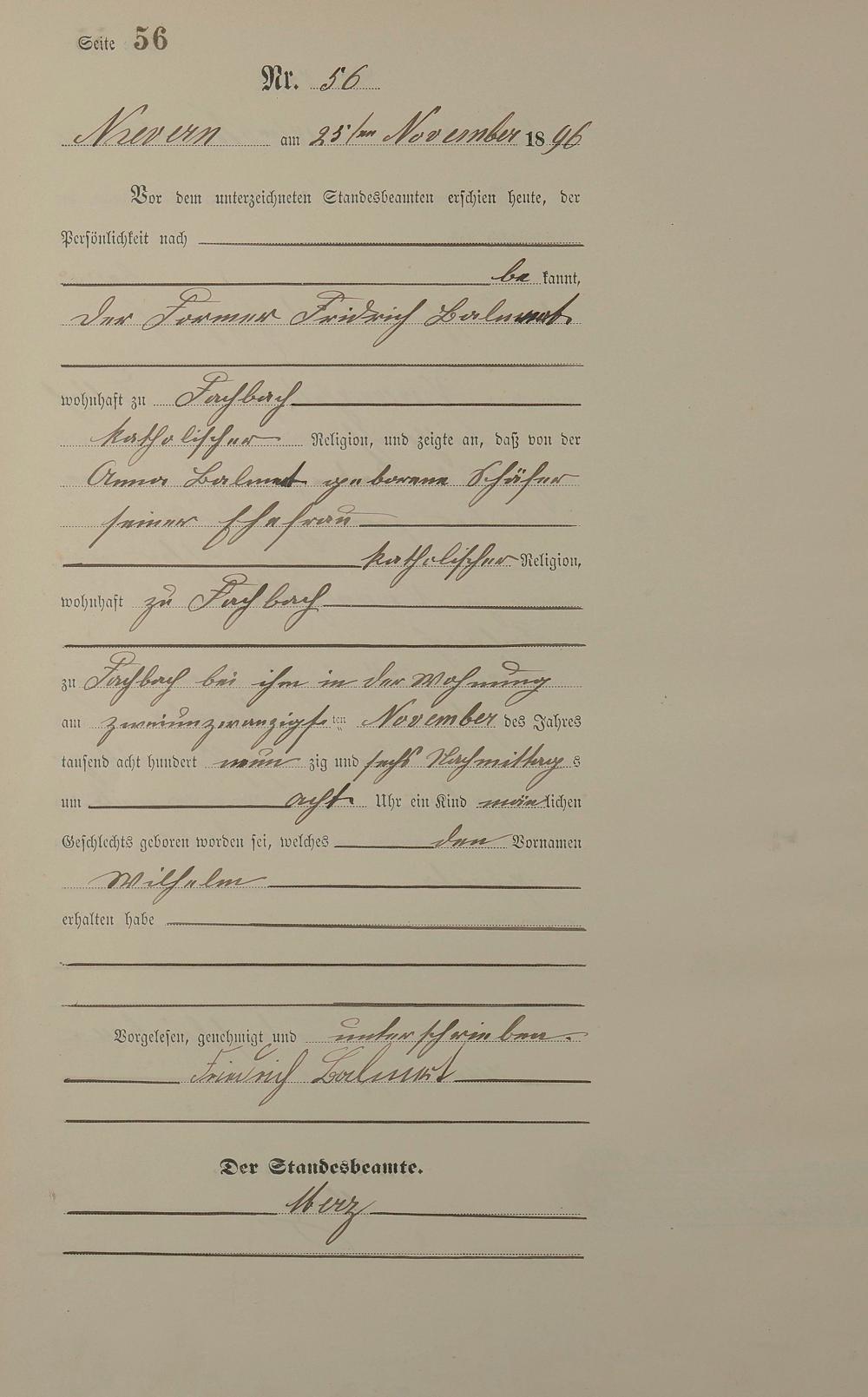 Geburtsregister 1896