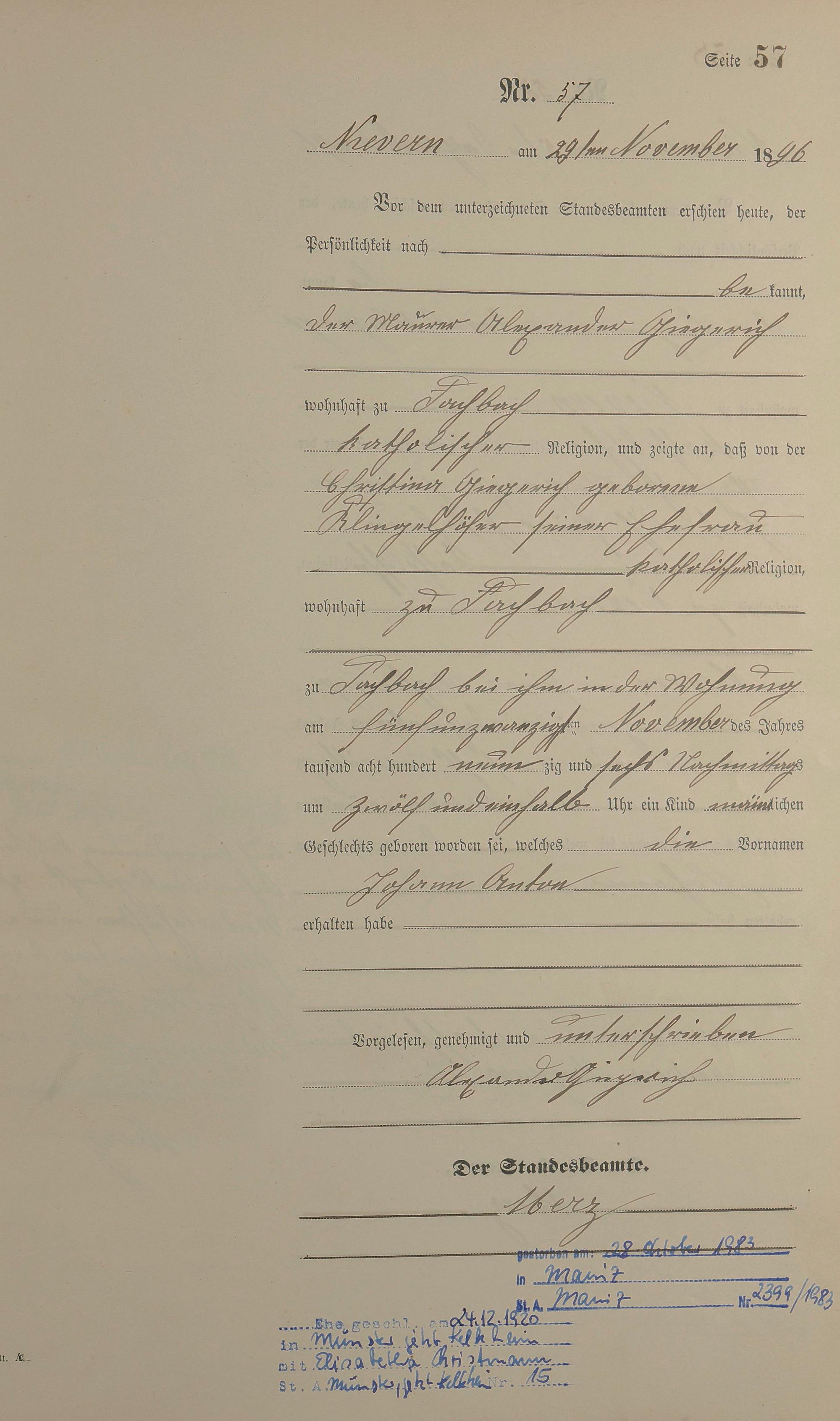 Geburtsregister 1896