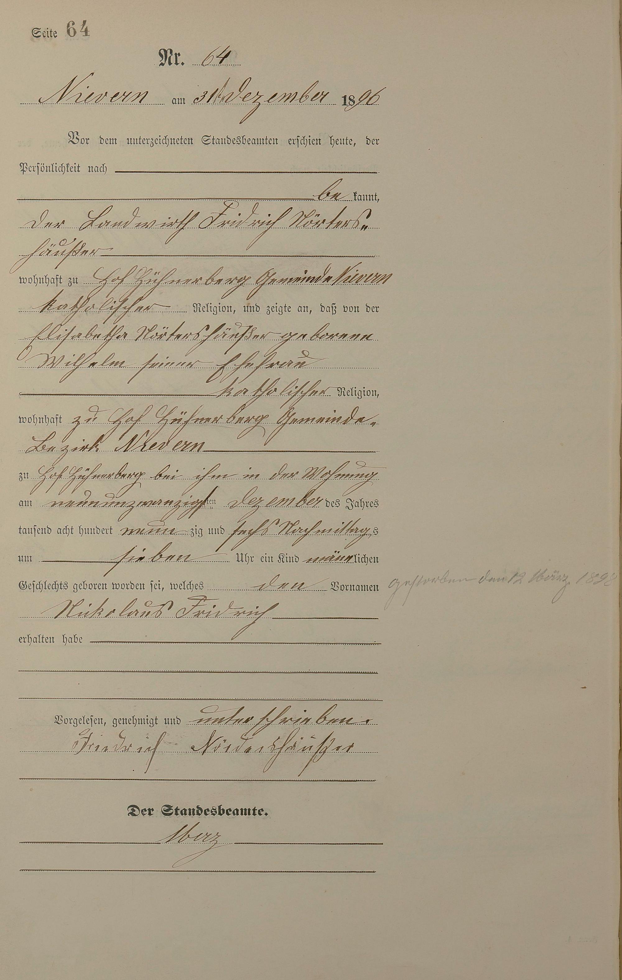 Geburtsregister 1896