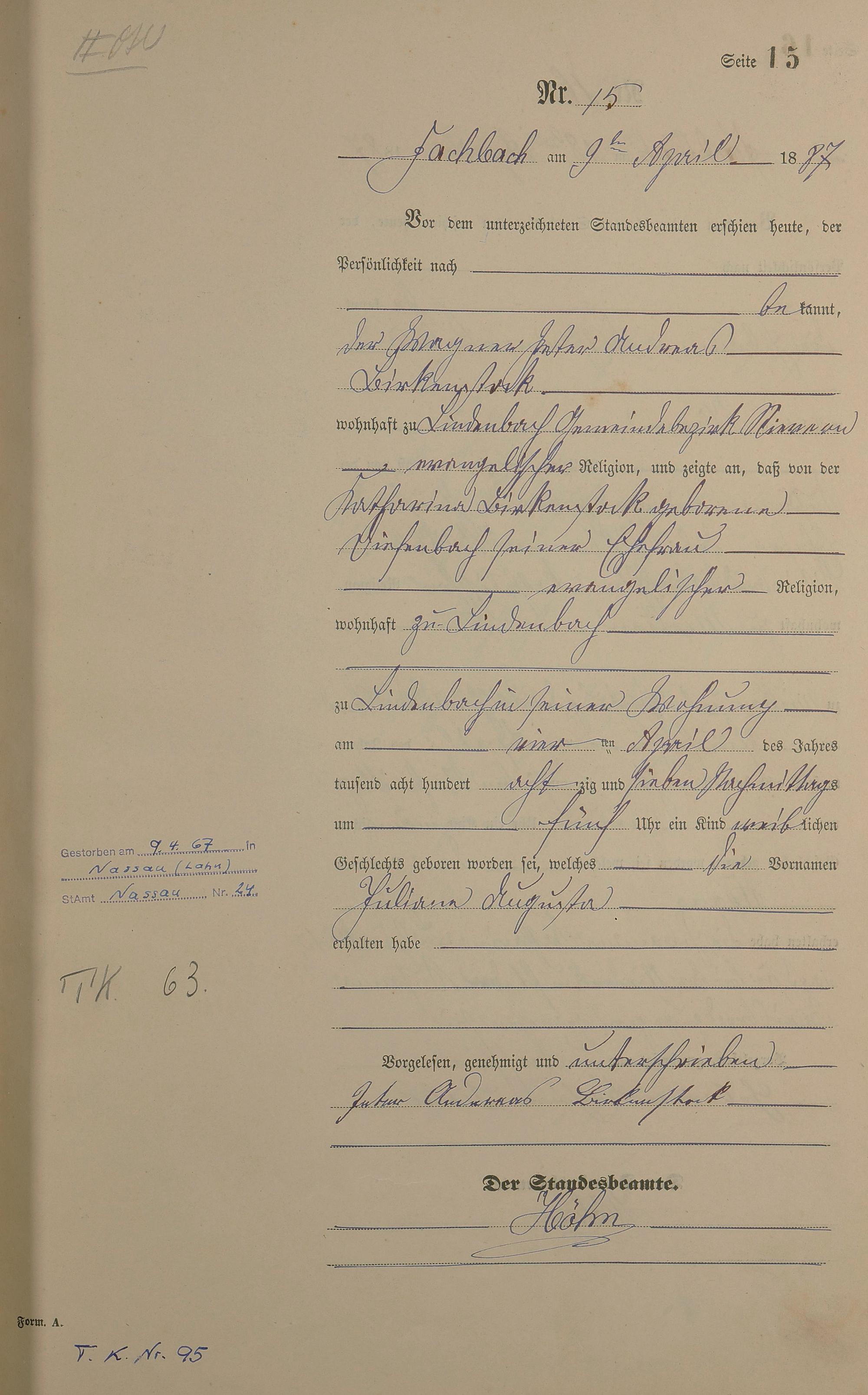 Geburtsregister 1887