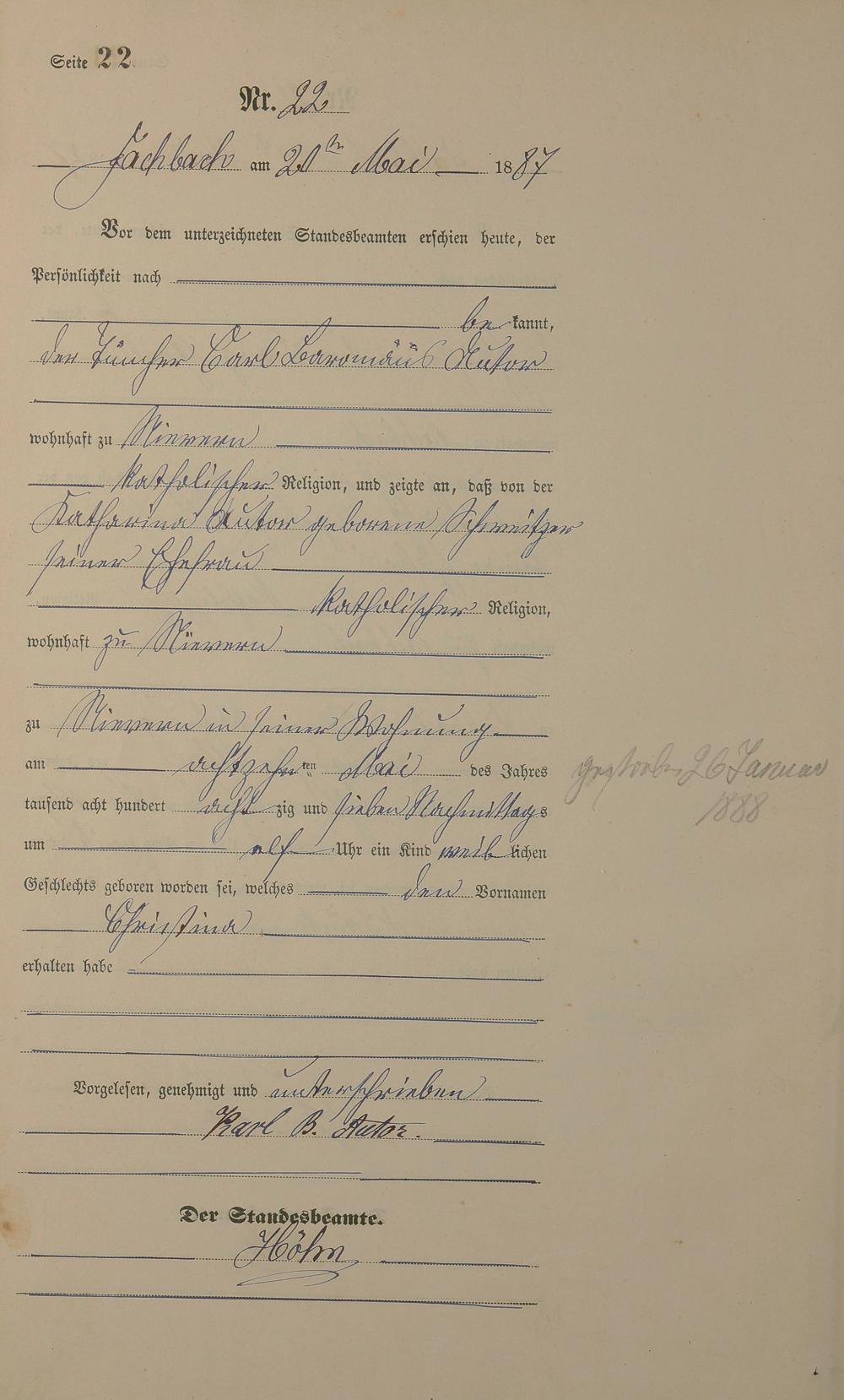 Geburtsregister 1887