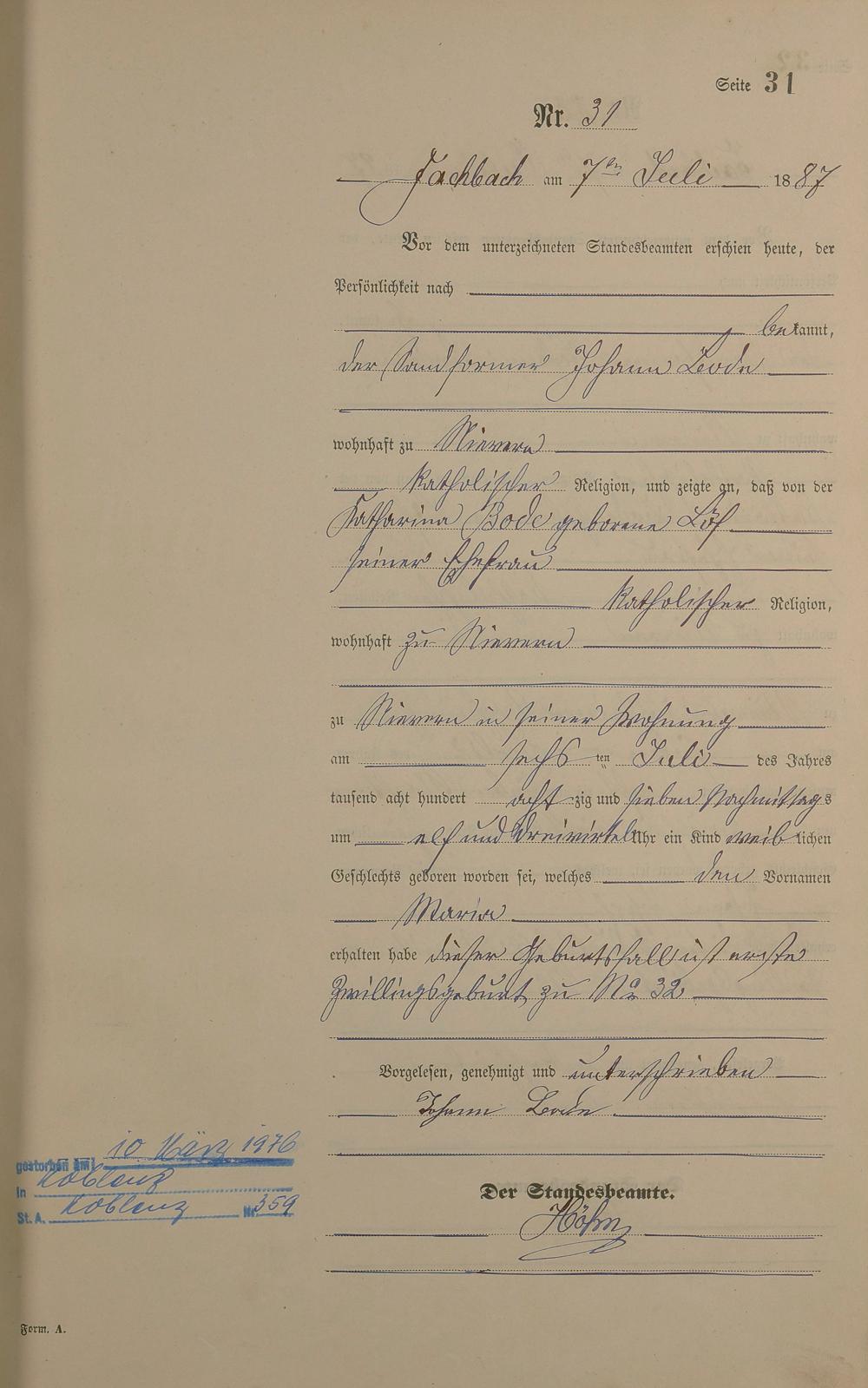 Geburtsregister 1887