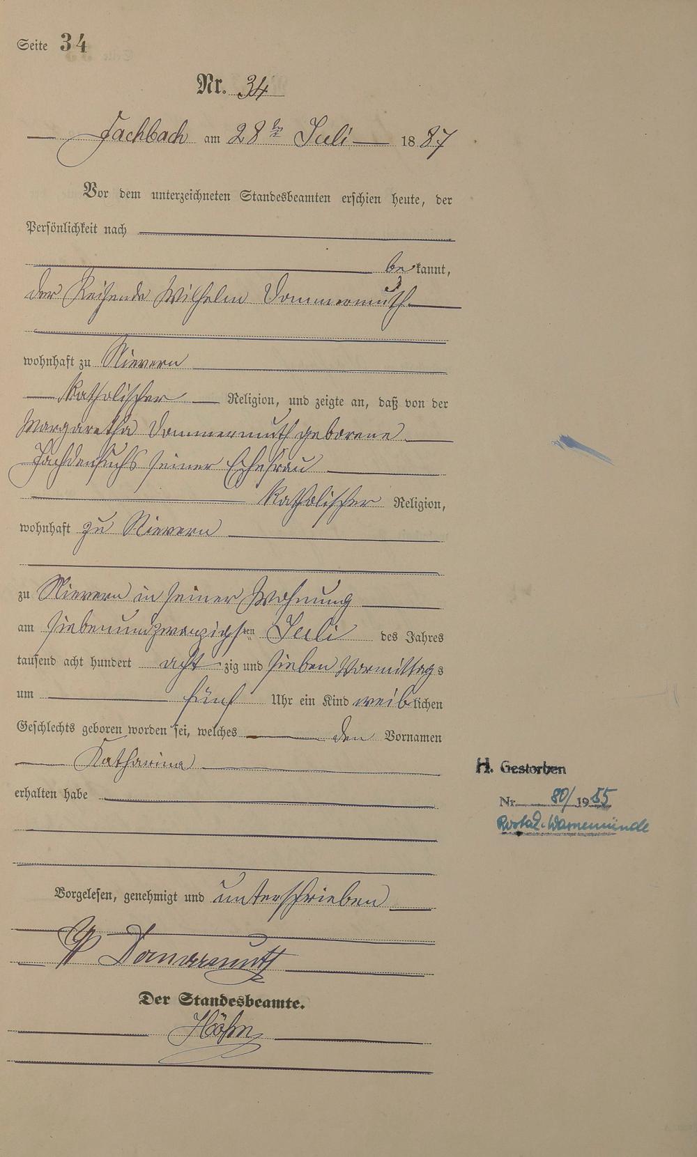 Geburtsregister 1887