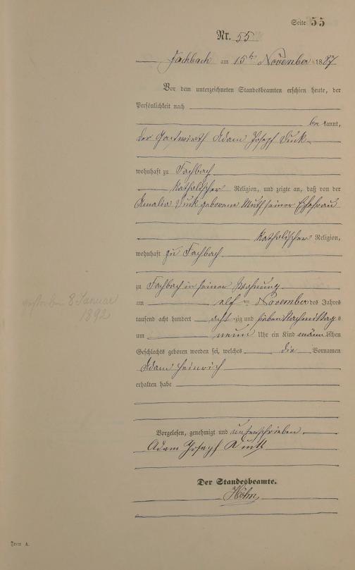 Geburtsregister 1887