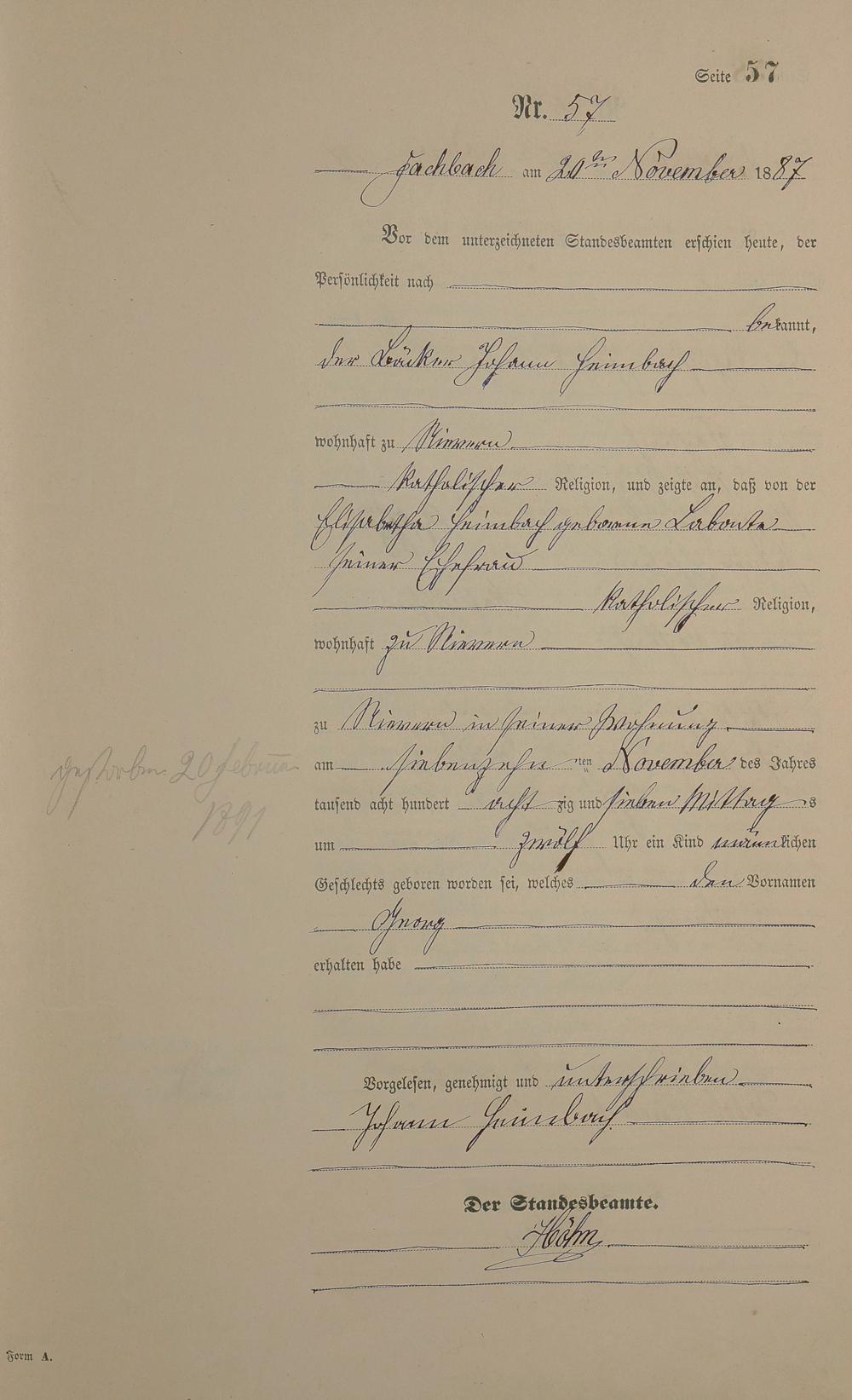 Geburtsregister 1887