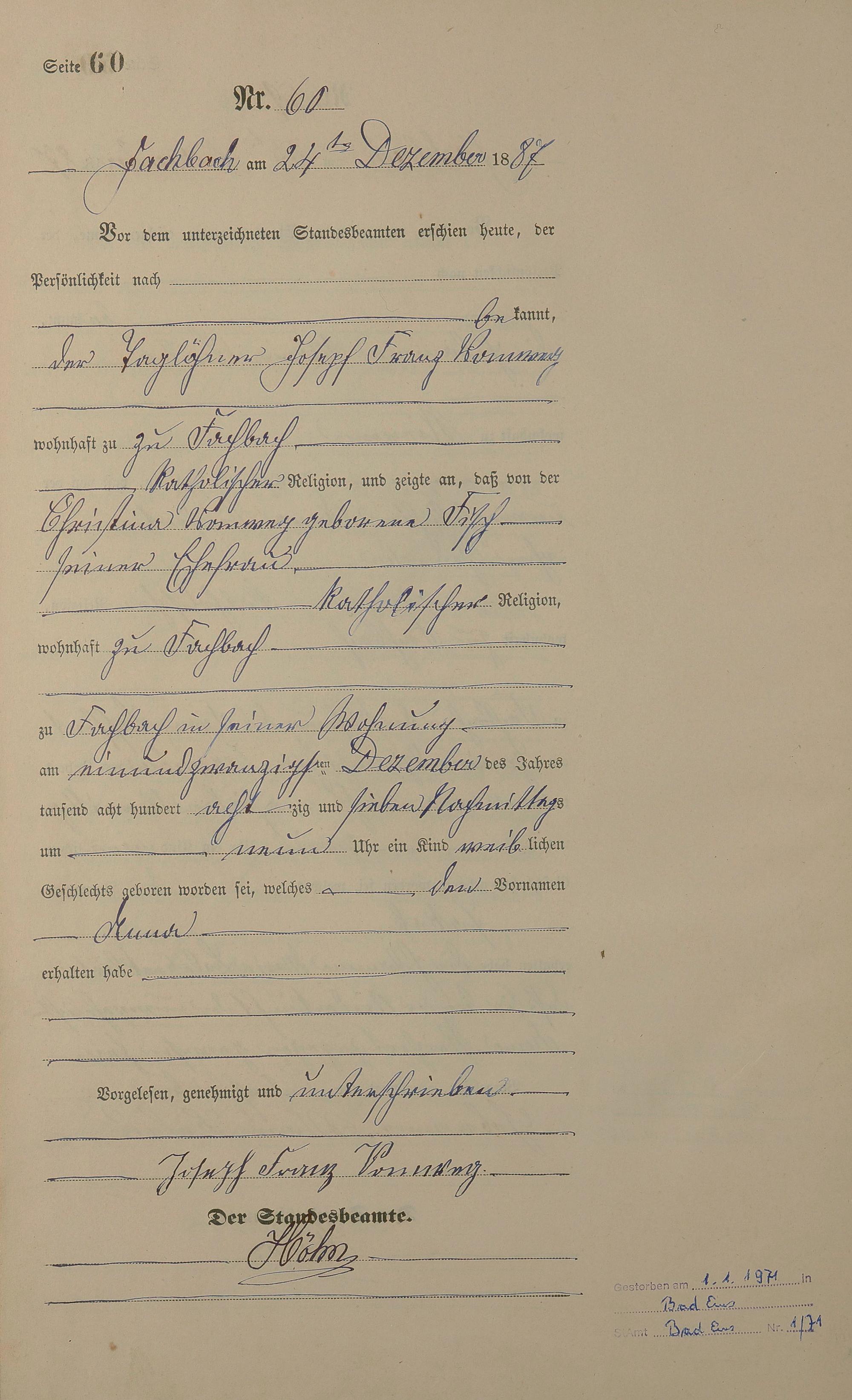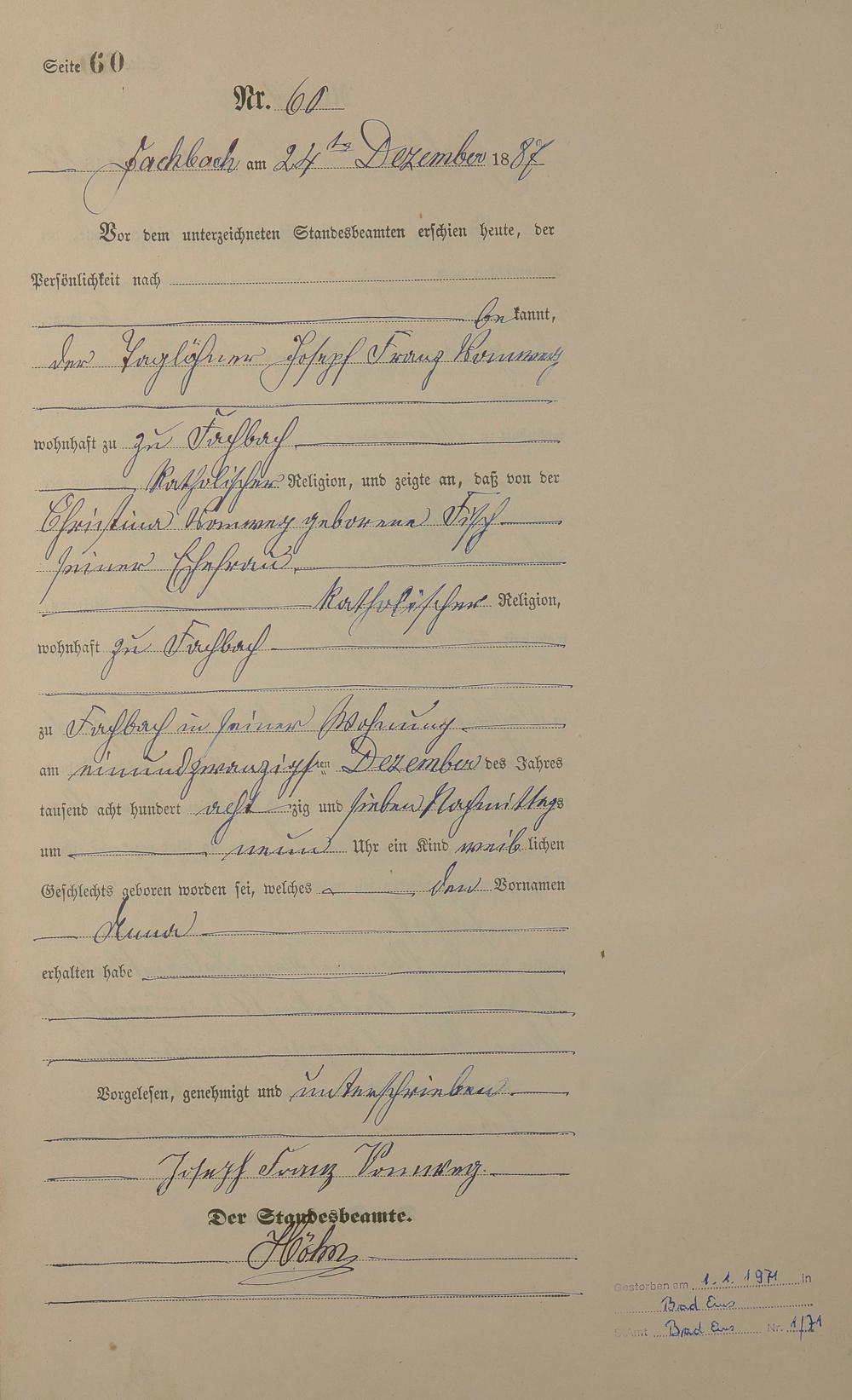 Geburtsregister 1887