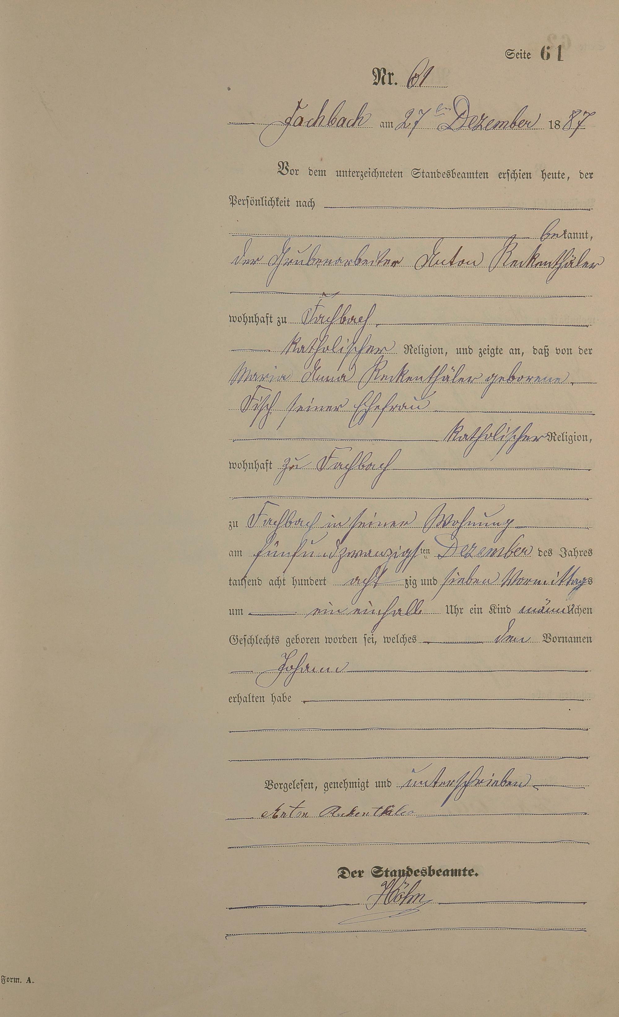 Geburtsregister 1887