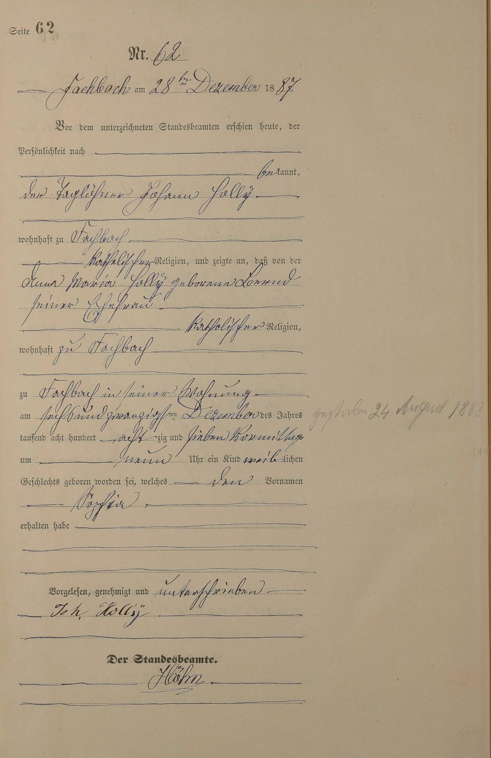 Geburtsregister 1887